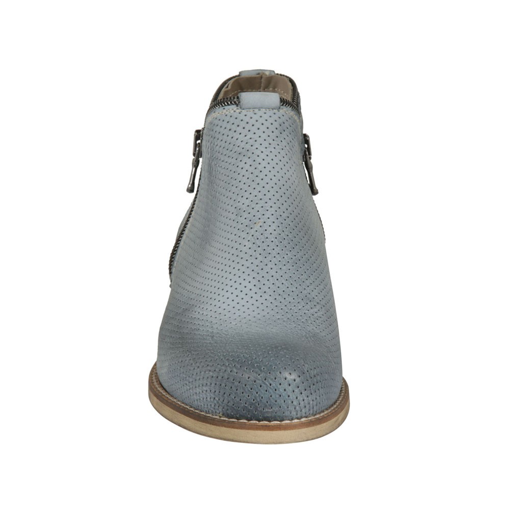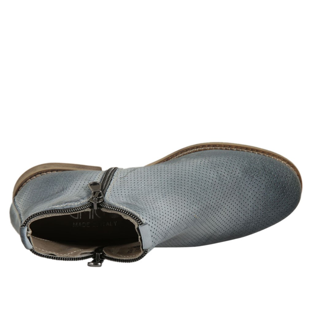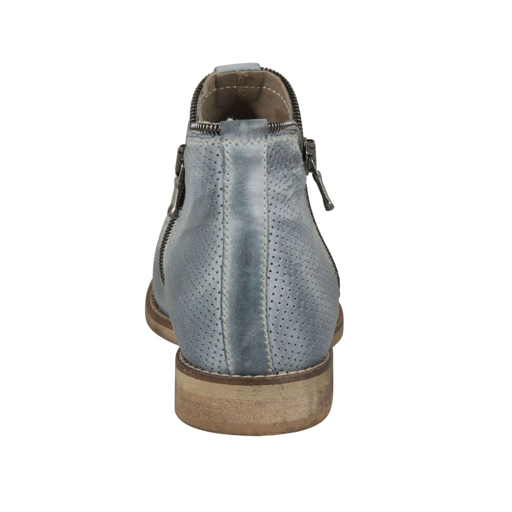 Bottines pour femmes avec fermetures eclair en cuir perforé bleu gris talon 2