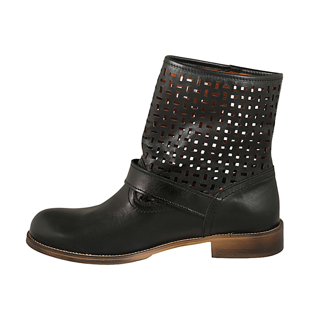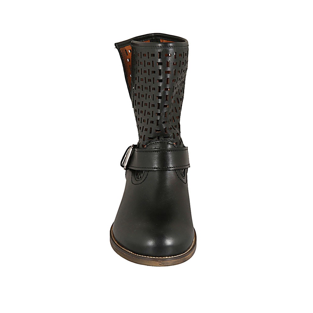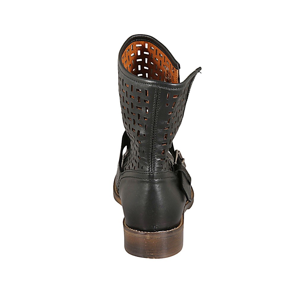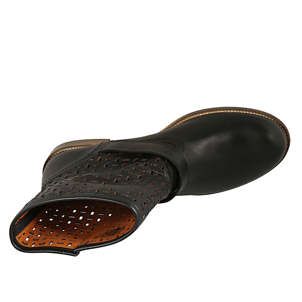 Bottines pour femmes avec boucle en cuir et cuir perforé noir talon 3