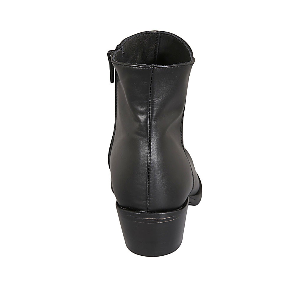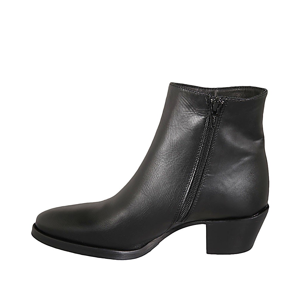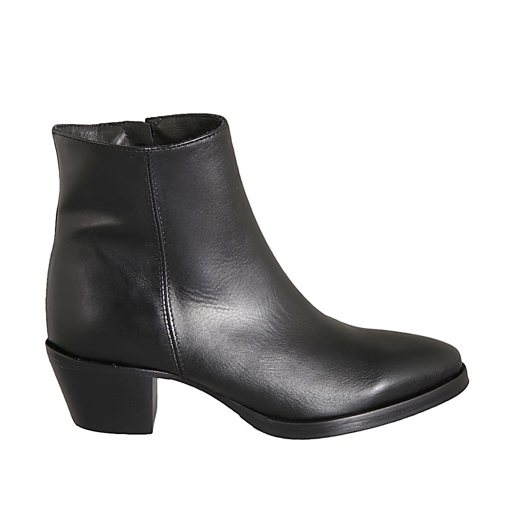 Bottine Texan pour femmes avec fermeture éclair en cuir noir talon 5