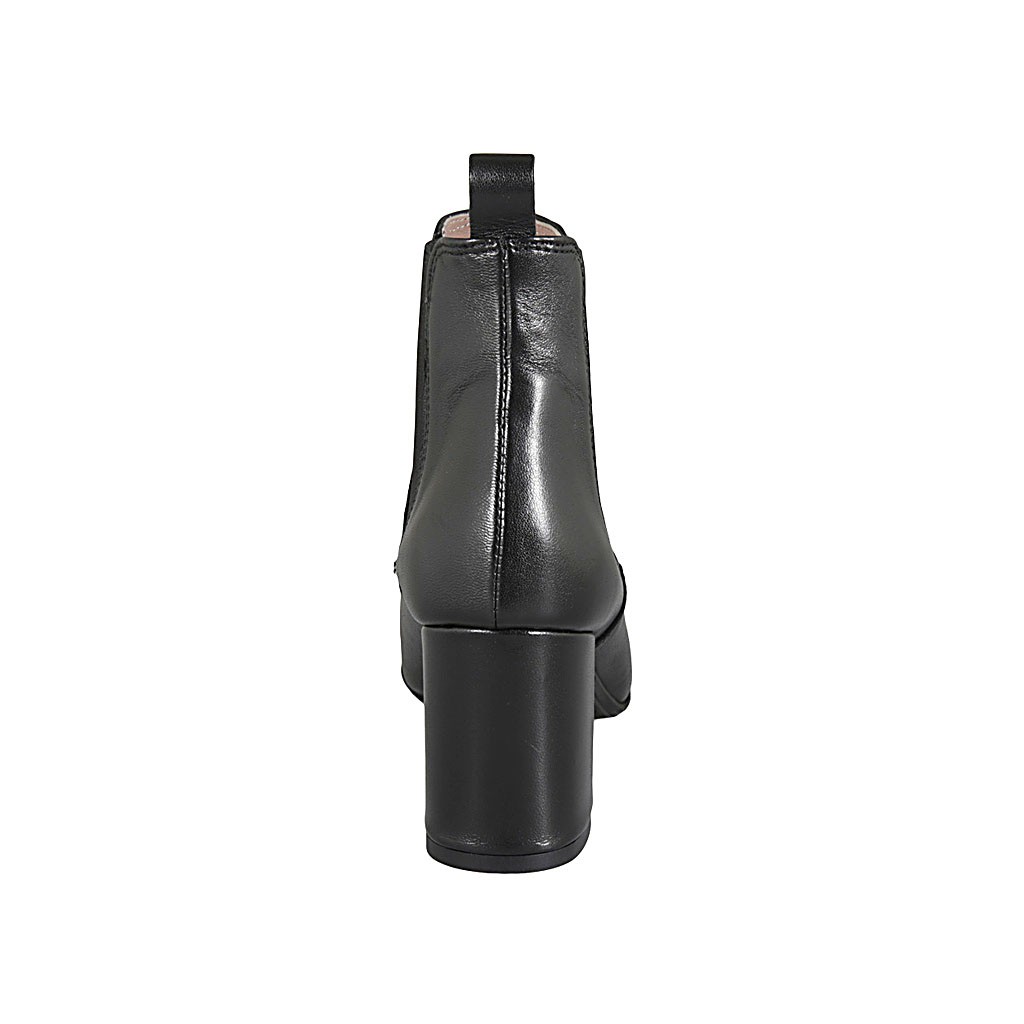 Bottines pour femmes en cuir noir avec deux élastiques talon 7
