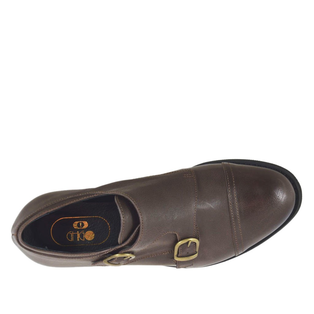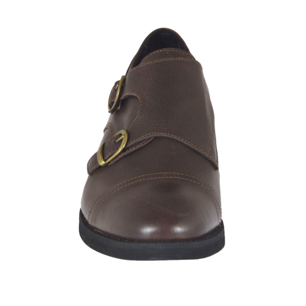 Elégant chaussure pour hommes avec bout droit et deux boucles en cuir marron