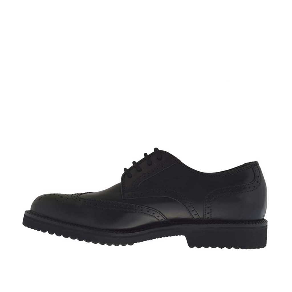 Chaussure derby élégant à lacets avec bout Brogue pour hommes en cuir noir