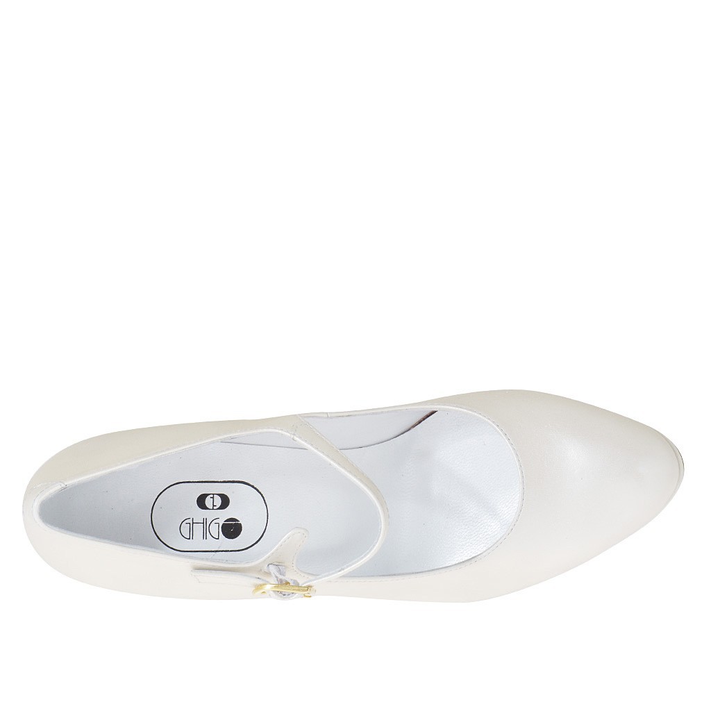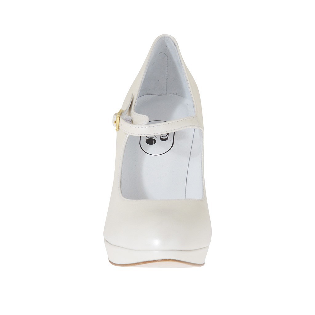 Escarpin pour femmes avec courroie et plateforme, talon haut cm. 10 avec 1 cm de plateau, cuir perlé ivoire, semelle en cuir, doublure en cuir. Disponible dans les pointures petites et grandes.