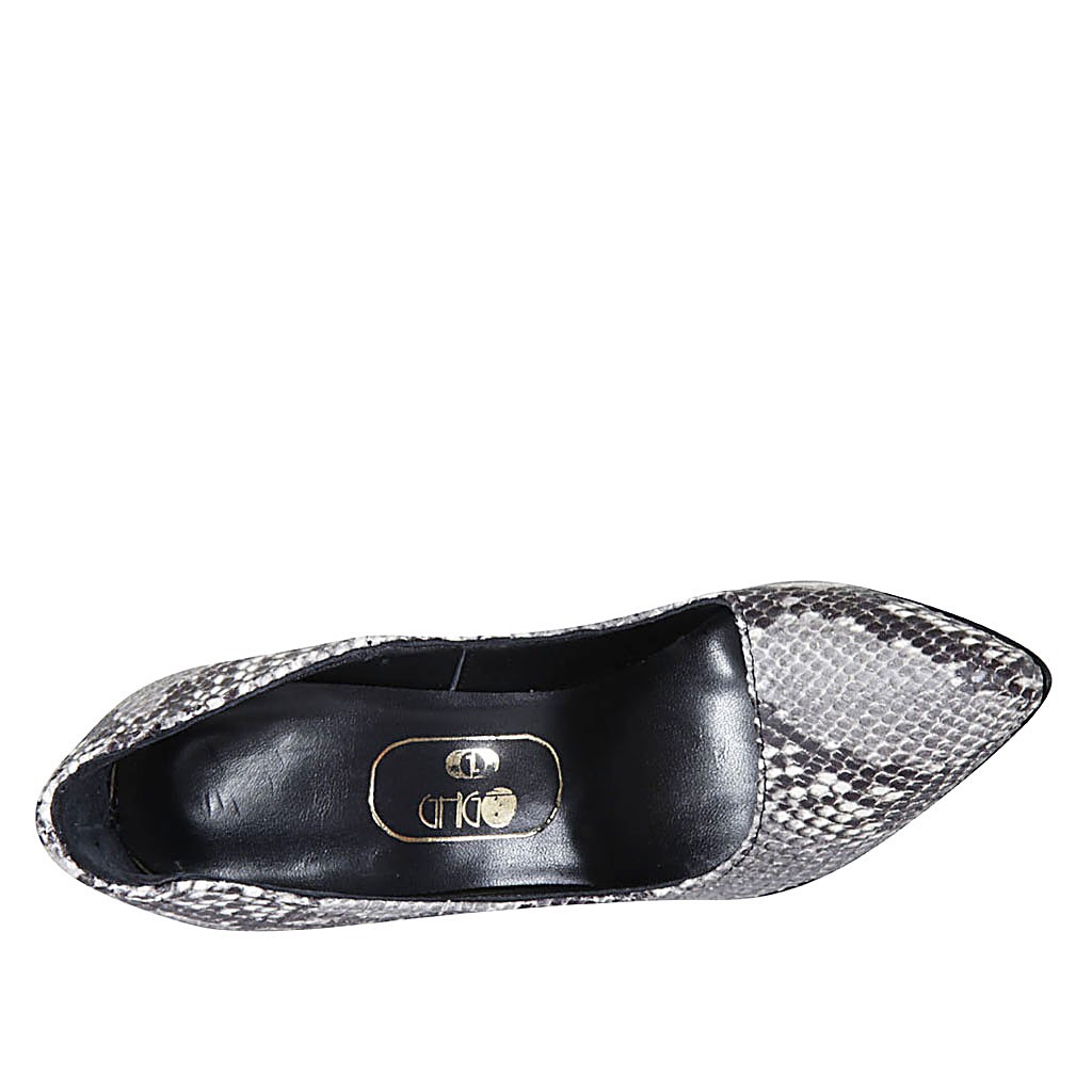 Escarpin pour femmes en cuir imprimé noir et blanc talon 11