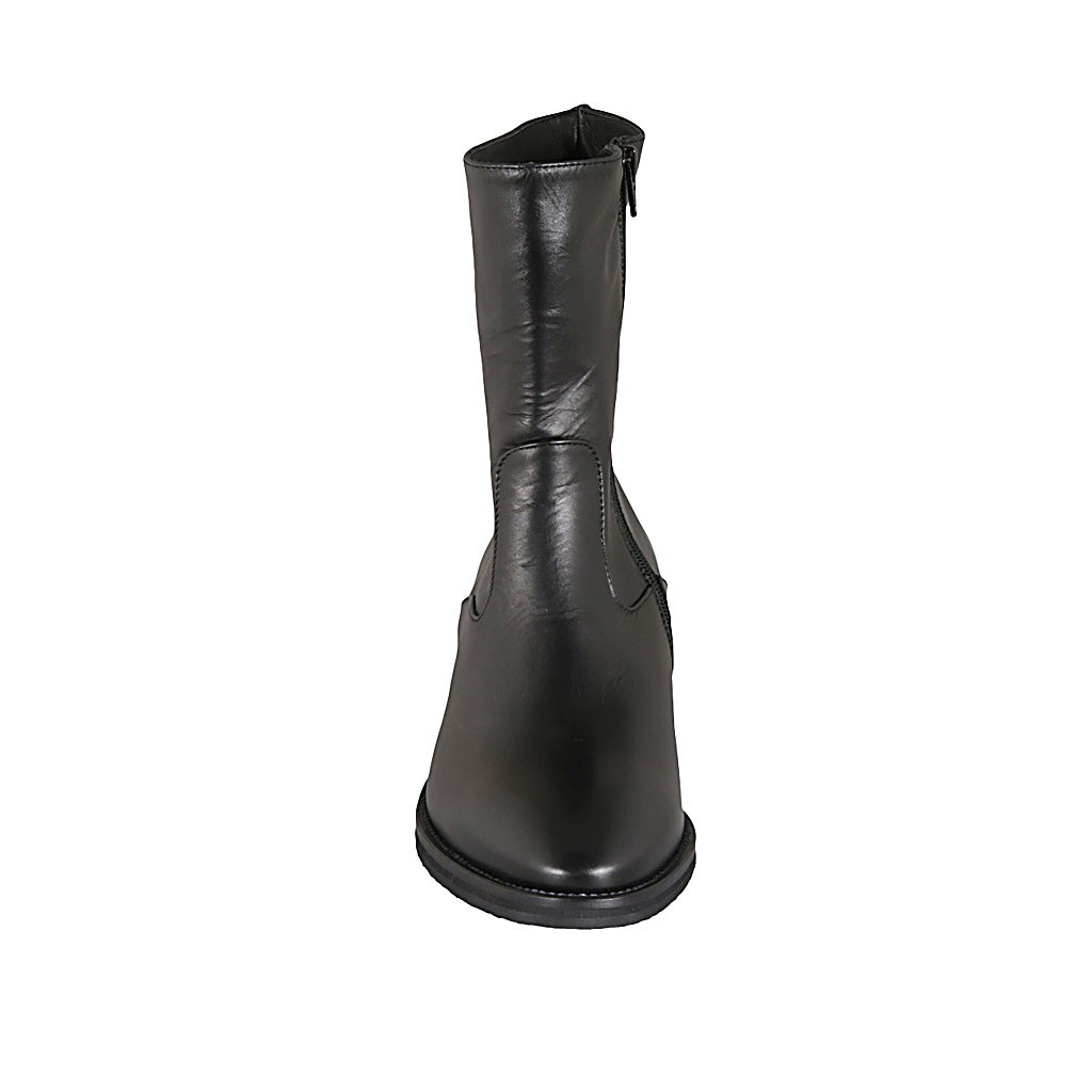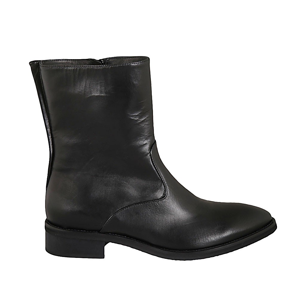 Bottines pour femmes avec fermeture éclair en cuir noir talon 3
