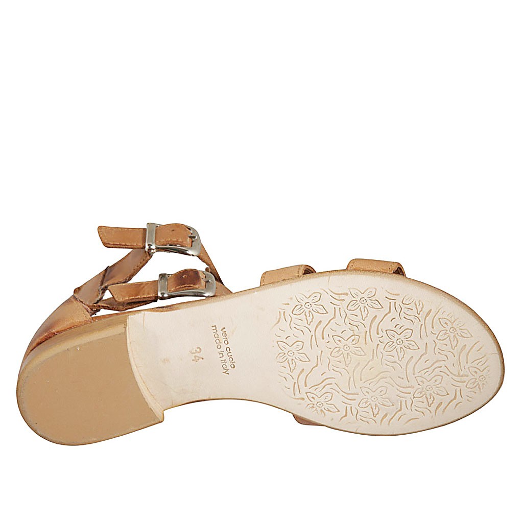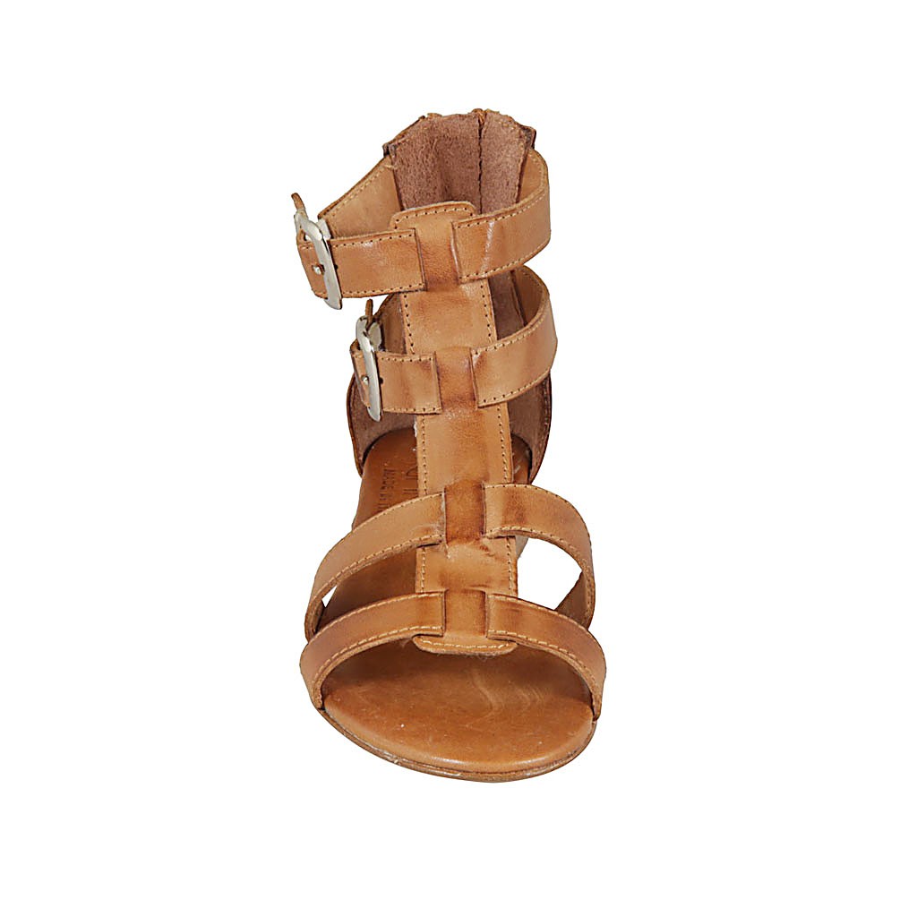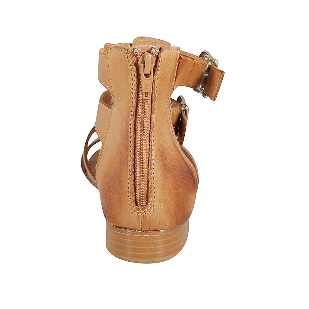 Chaussure ouvert pour femmes avec fermeture éclair et boucles en cuir brun clair talon 2