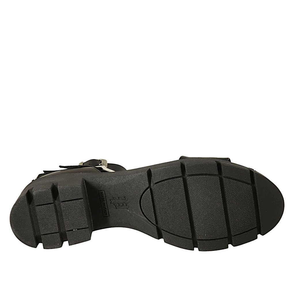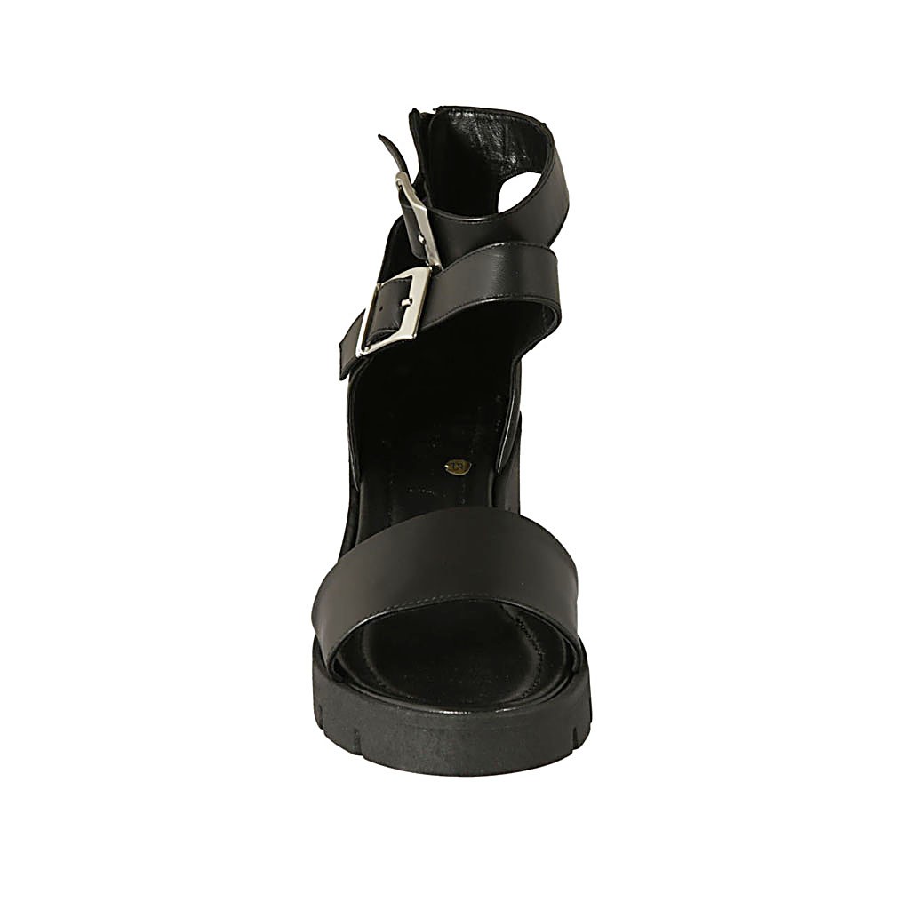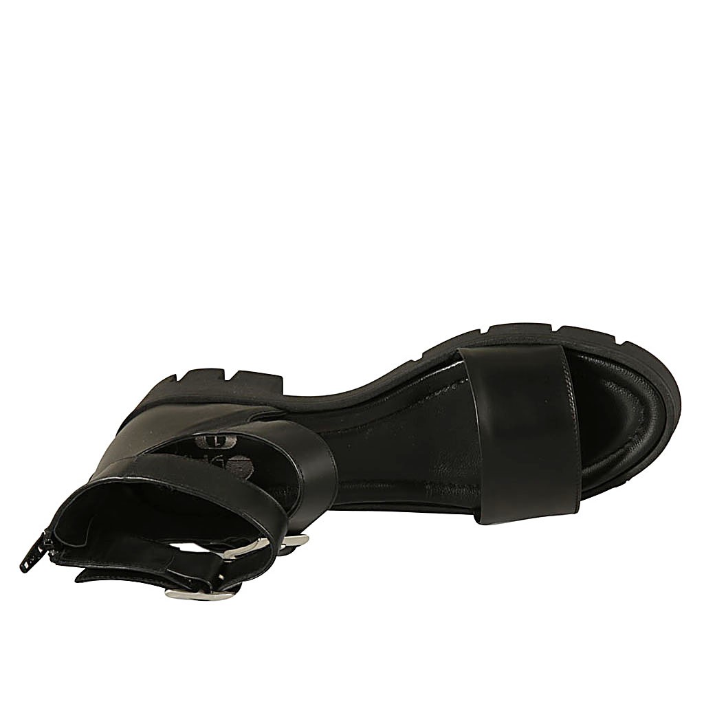Chaussure ouverte pour femmes avec fermeture éclair et boucles en cuir noir talon 5