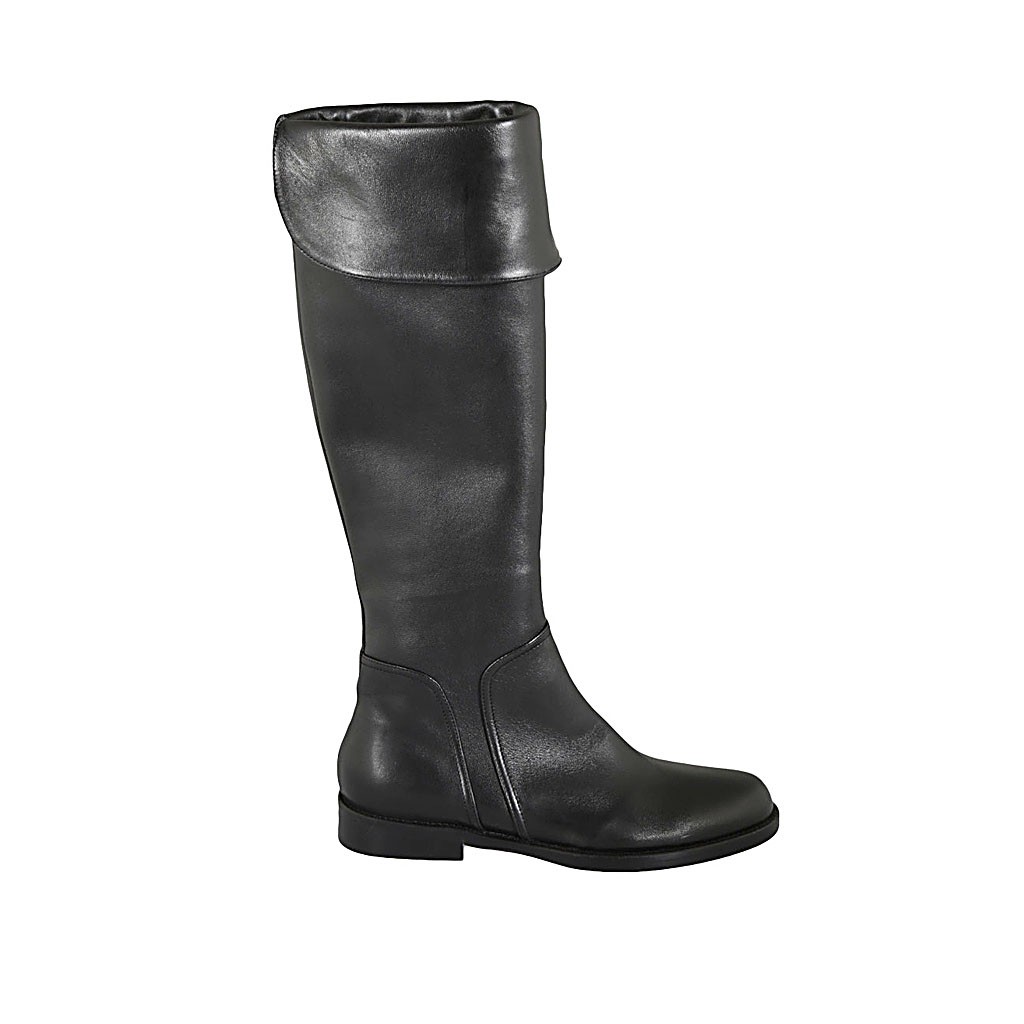 Bottes pour femmes avec revers et fermeture éclair en cuir noir talon 3