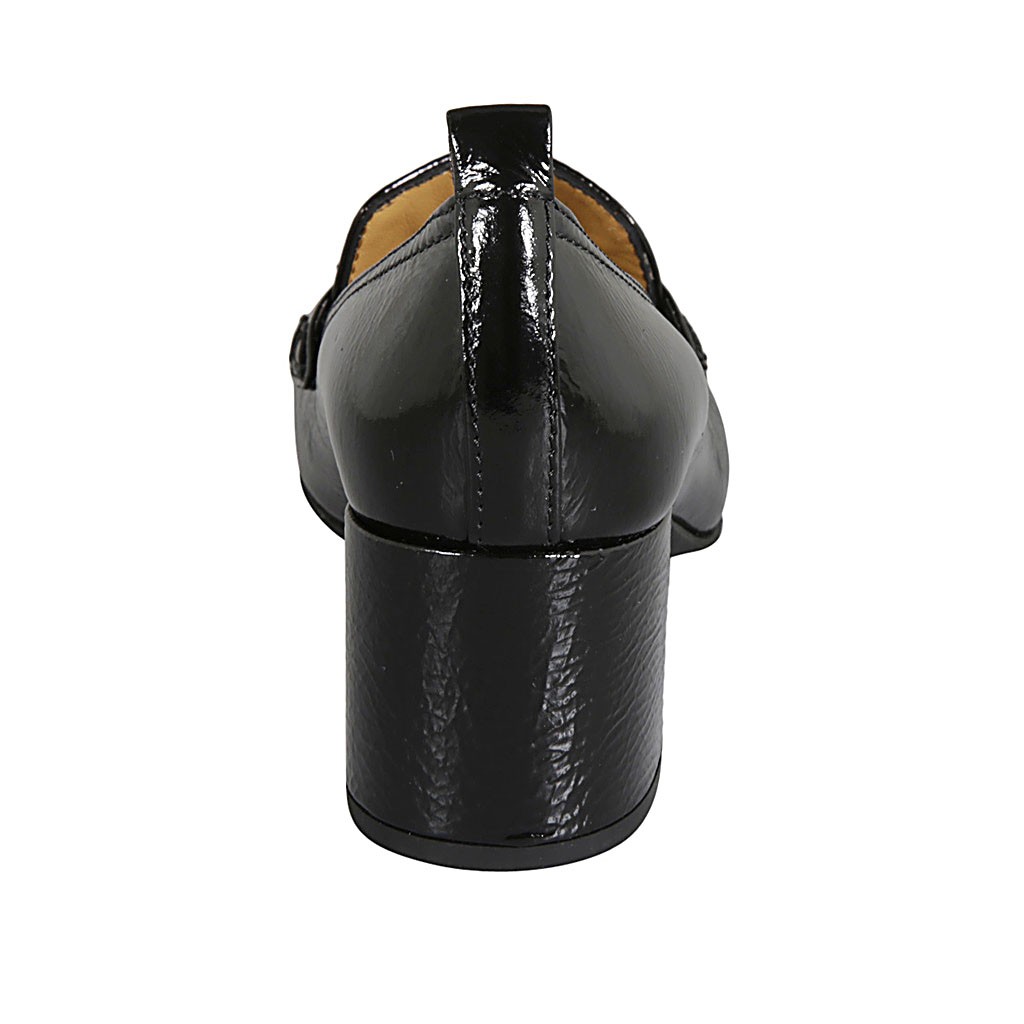 Mocassin pour femmes avec glands en cuir verni noir talon 5