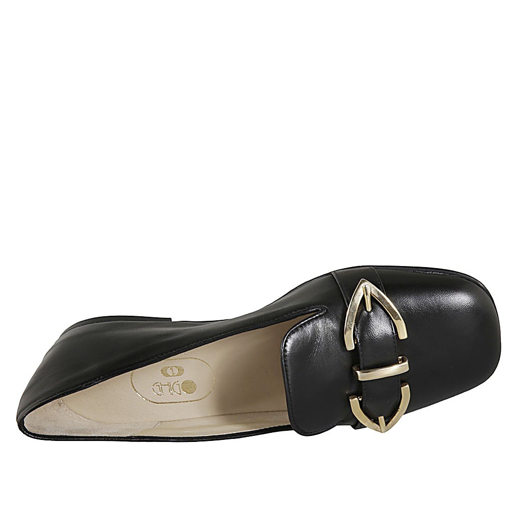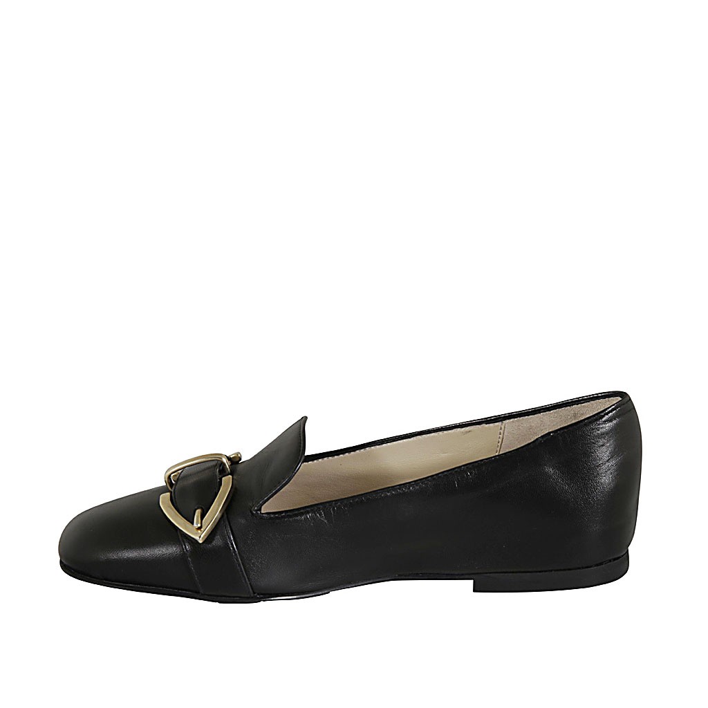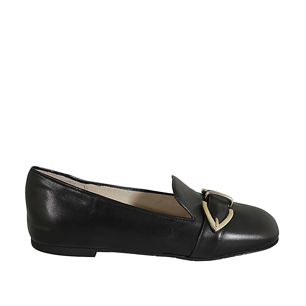 Mocassin pour femmes avec boucle en cuir noir talon 1