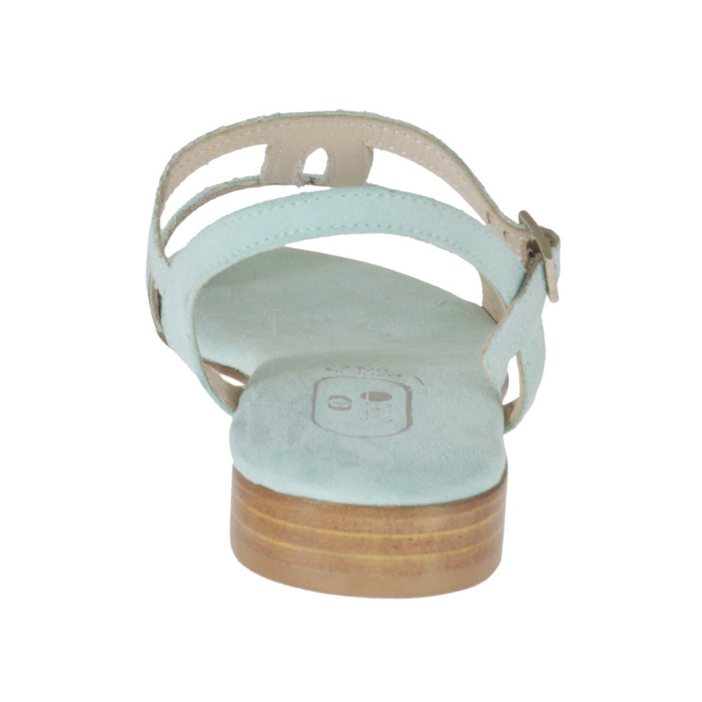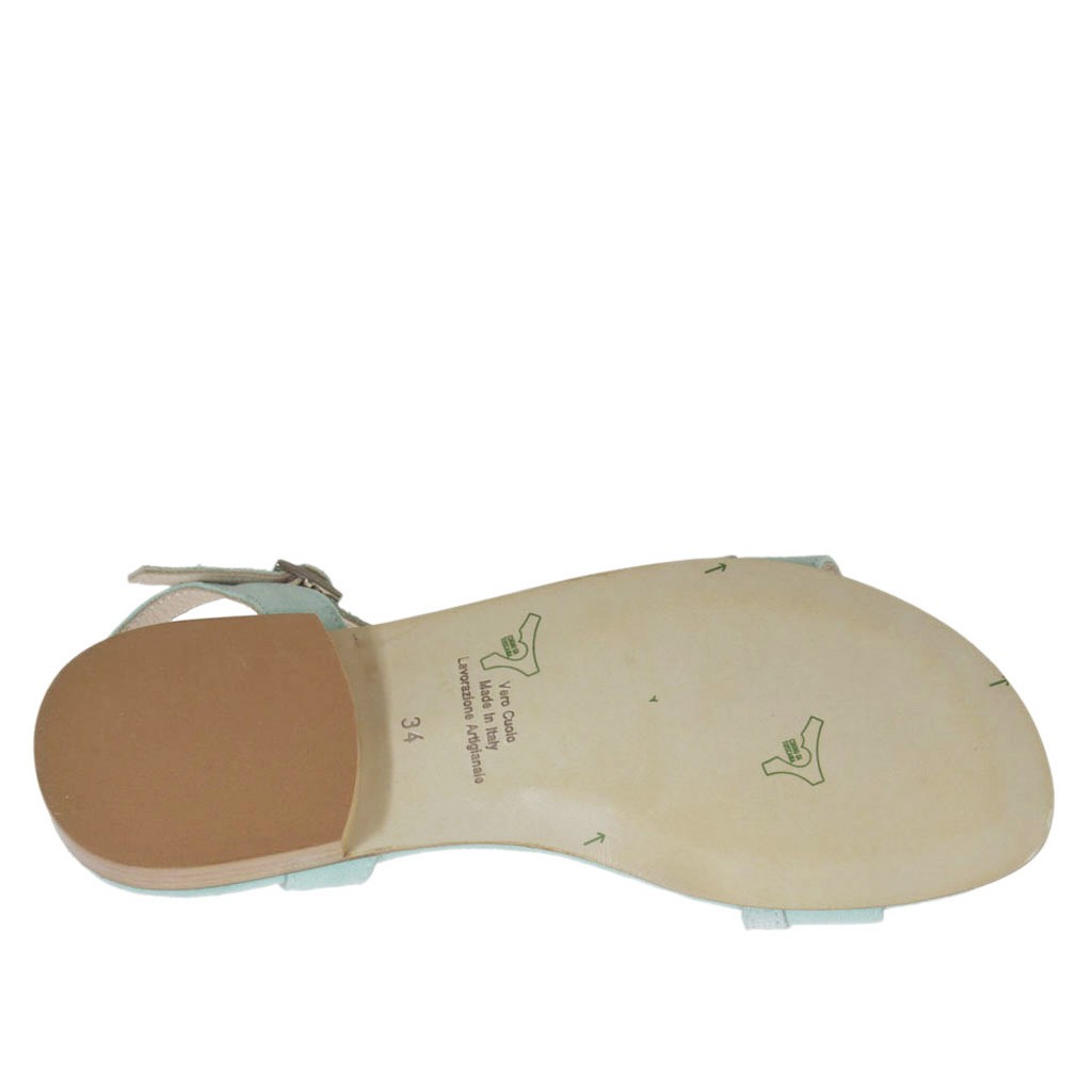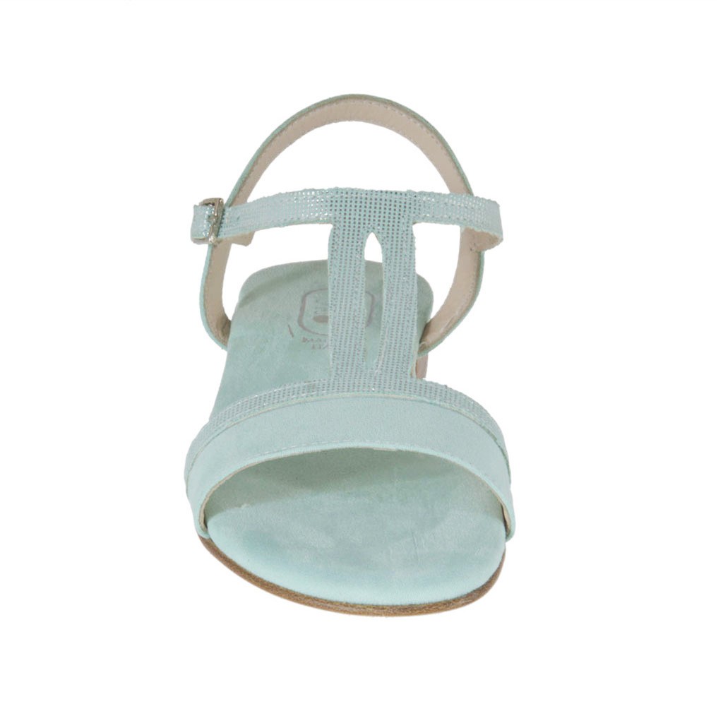 Sandale scintillant pour femmes avec courroie, en daim bleu-vert, talon haut cm. 2, doublure en cuir, semelle en cuir. Disponible dans les pointures grandes et petites.