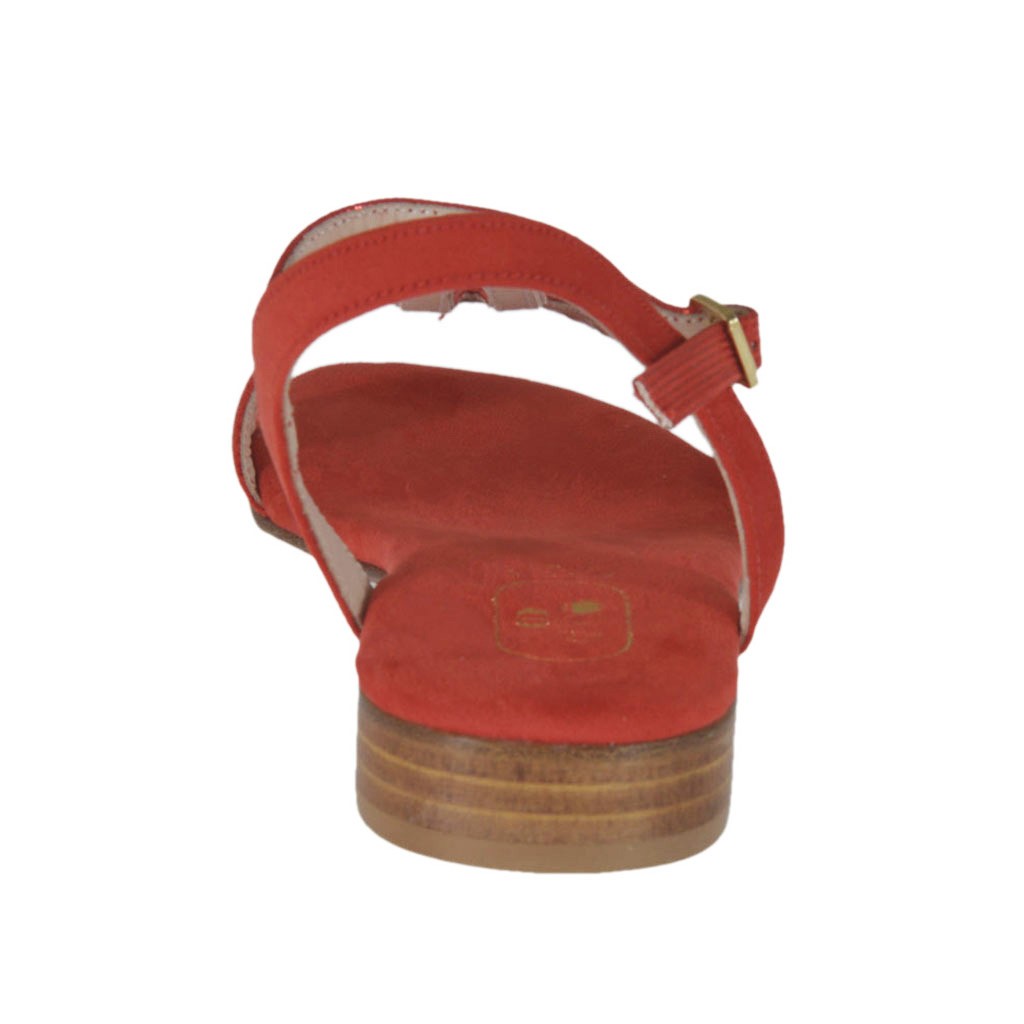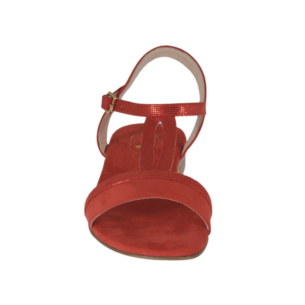 Sandale scintillant pour femmes avec courroie, en daim rouge, talon haut cm. 2, doublure en cuir, semelle en cuir. Disponible dans les pointures grandes et petites.