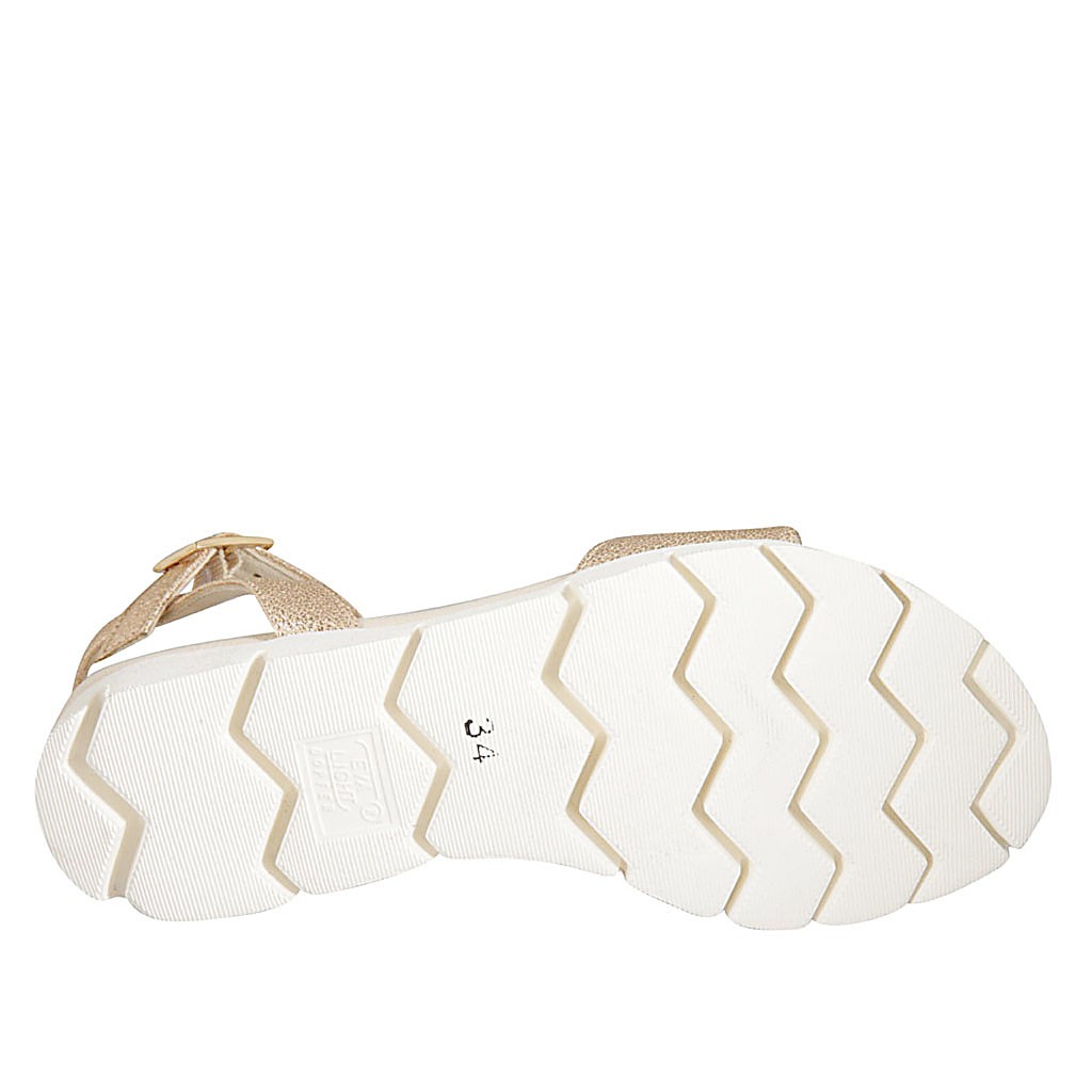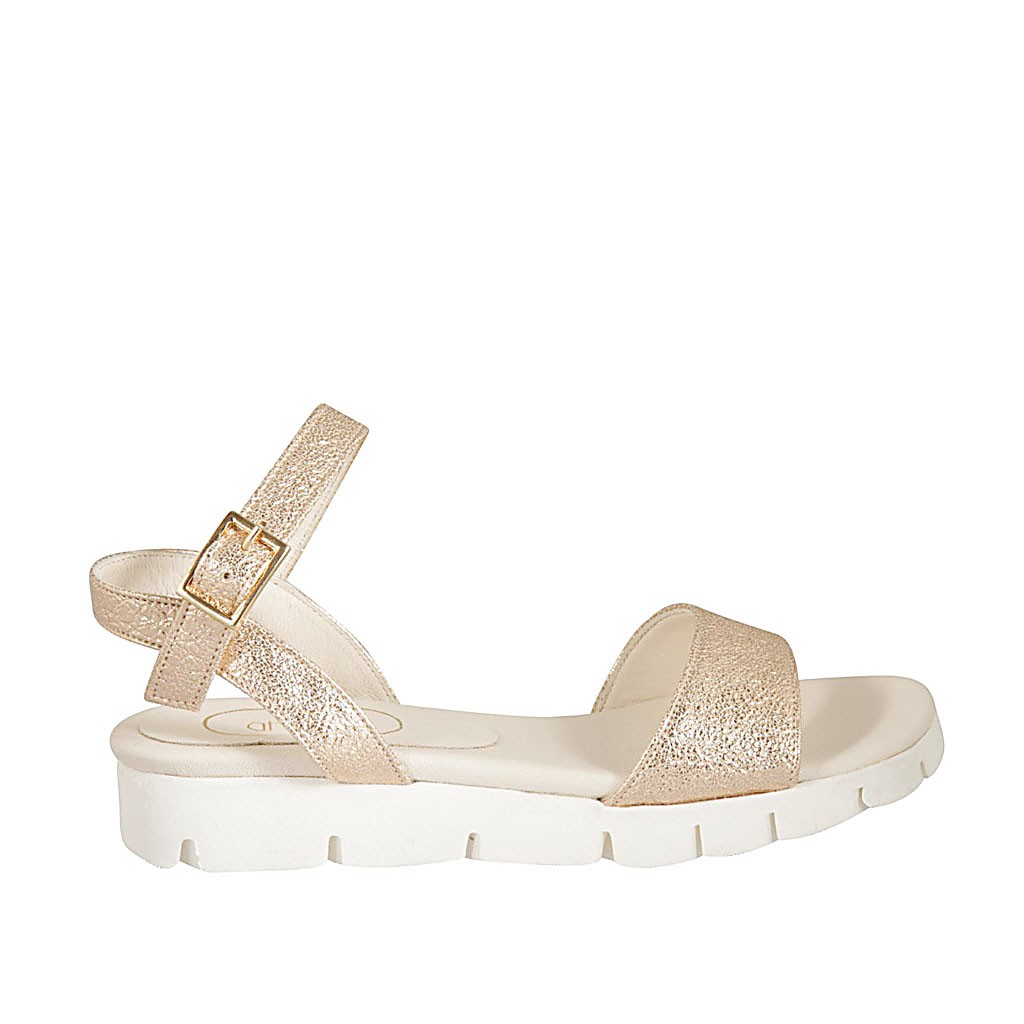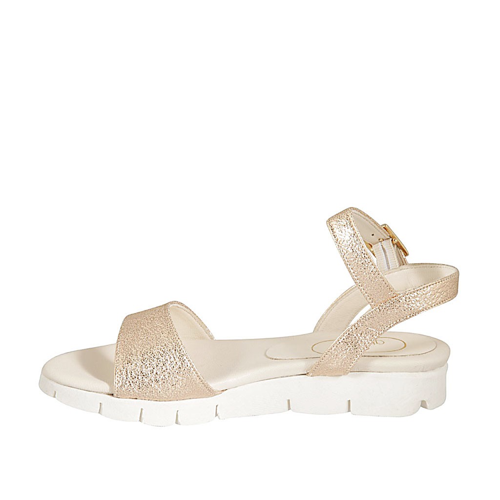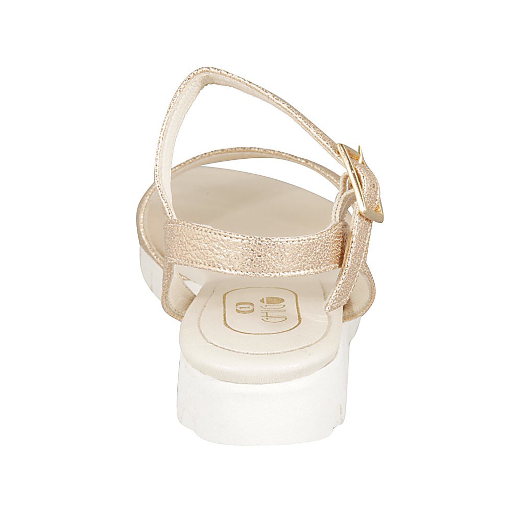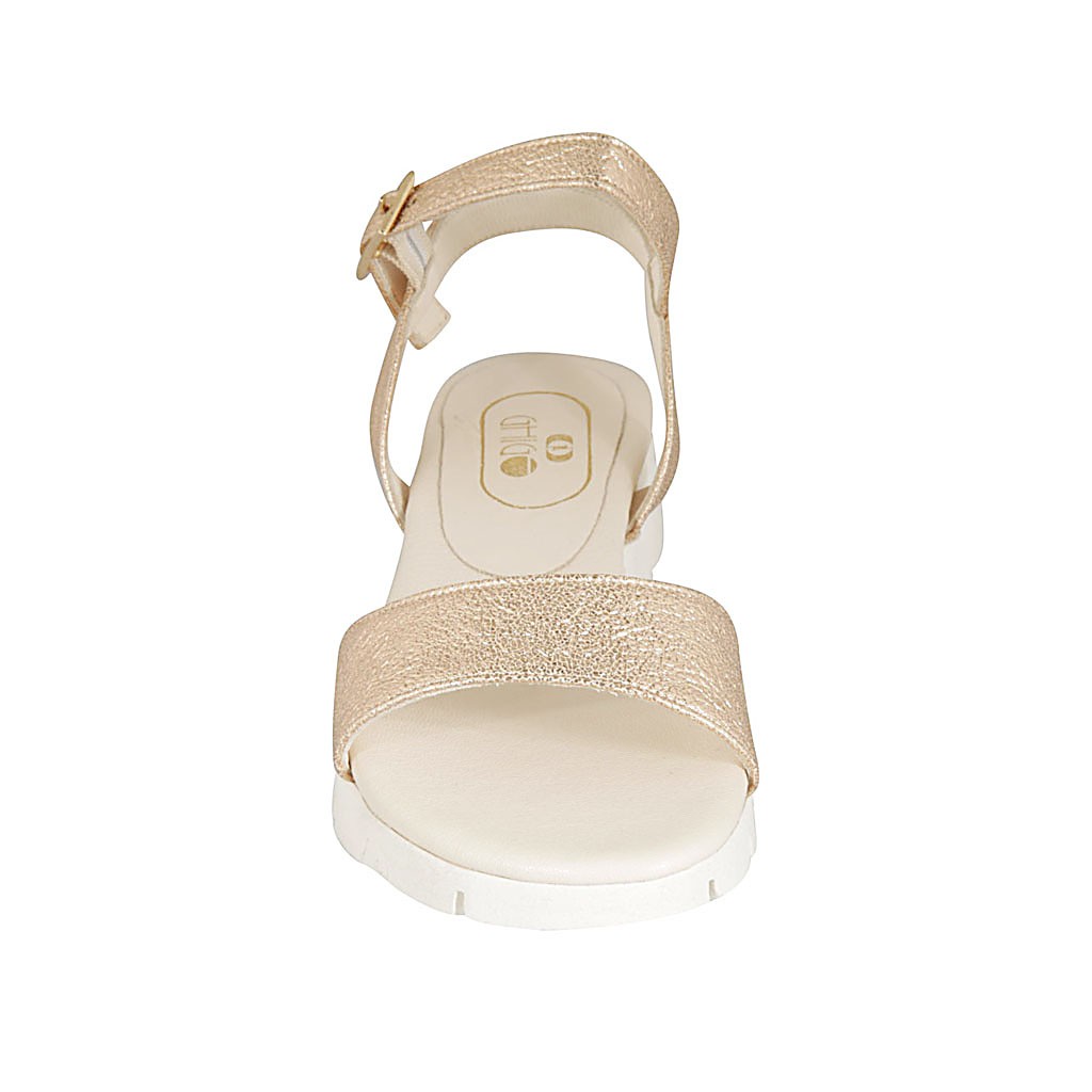 Sandale pour femmes en cuir lamé cuivre avec texture de pierre, courroie et talon compensé 2