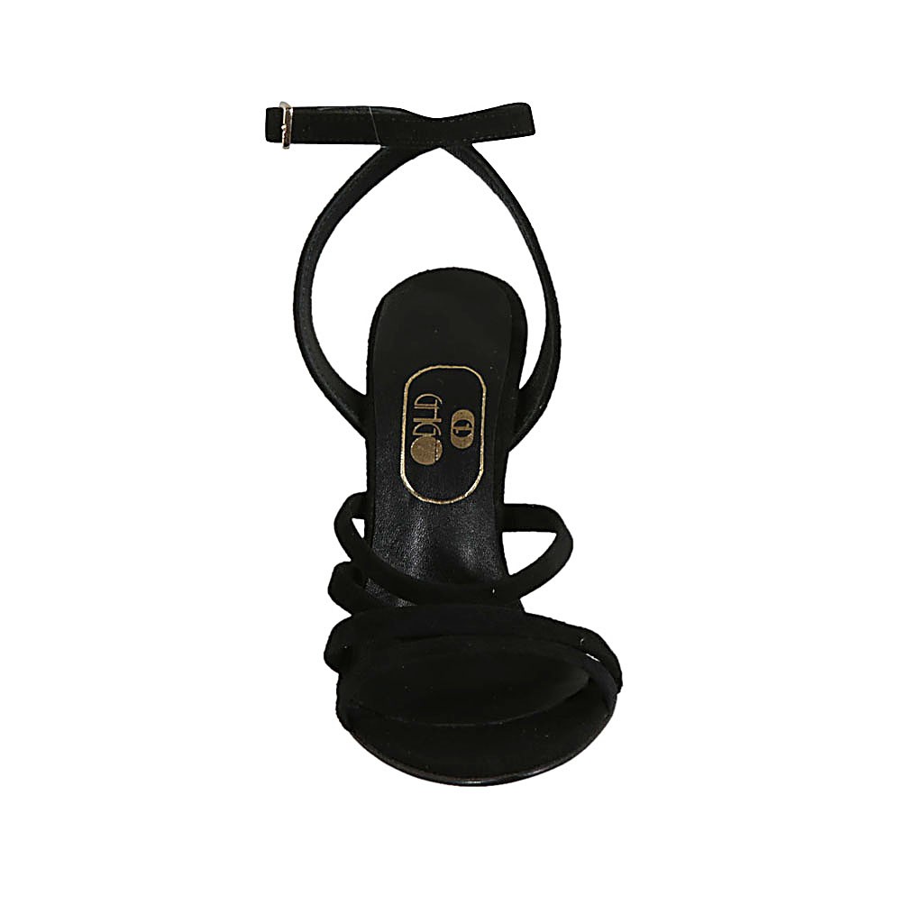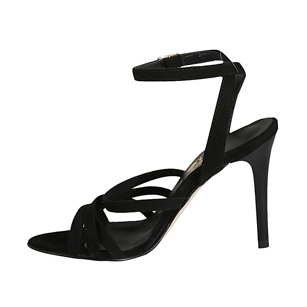 Sandale pour femmes avec courroie à la cheville en daim noir talon 9