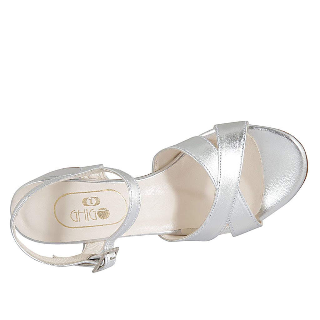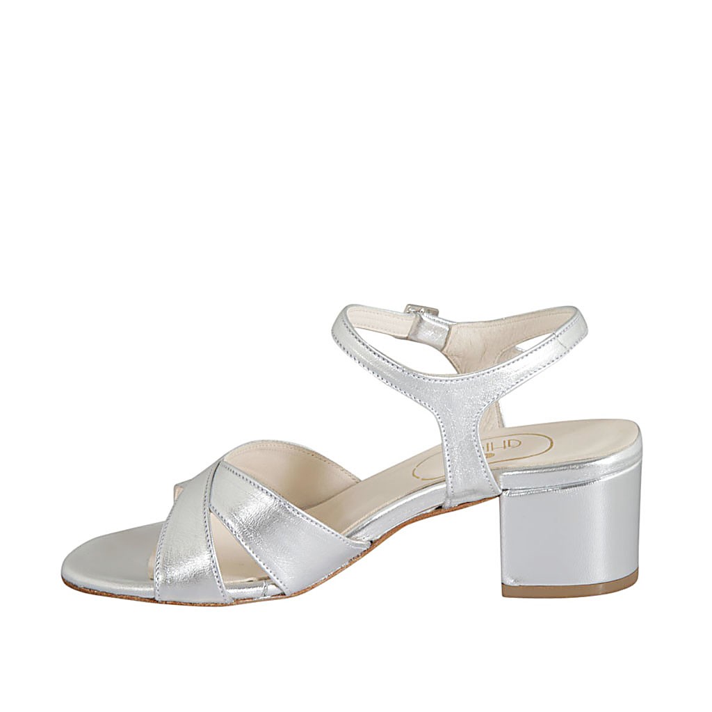 Sandale pour femmes en cuir lamé argent avec courroie talon 5