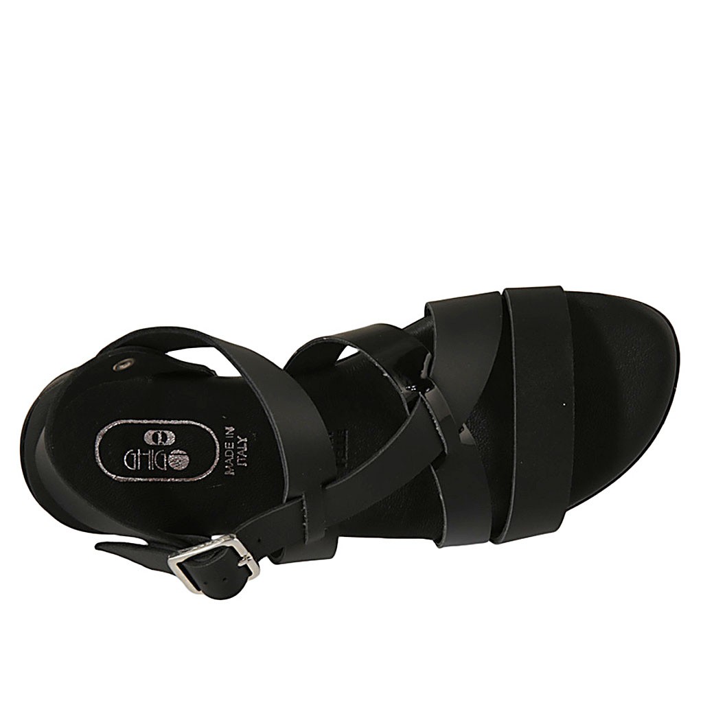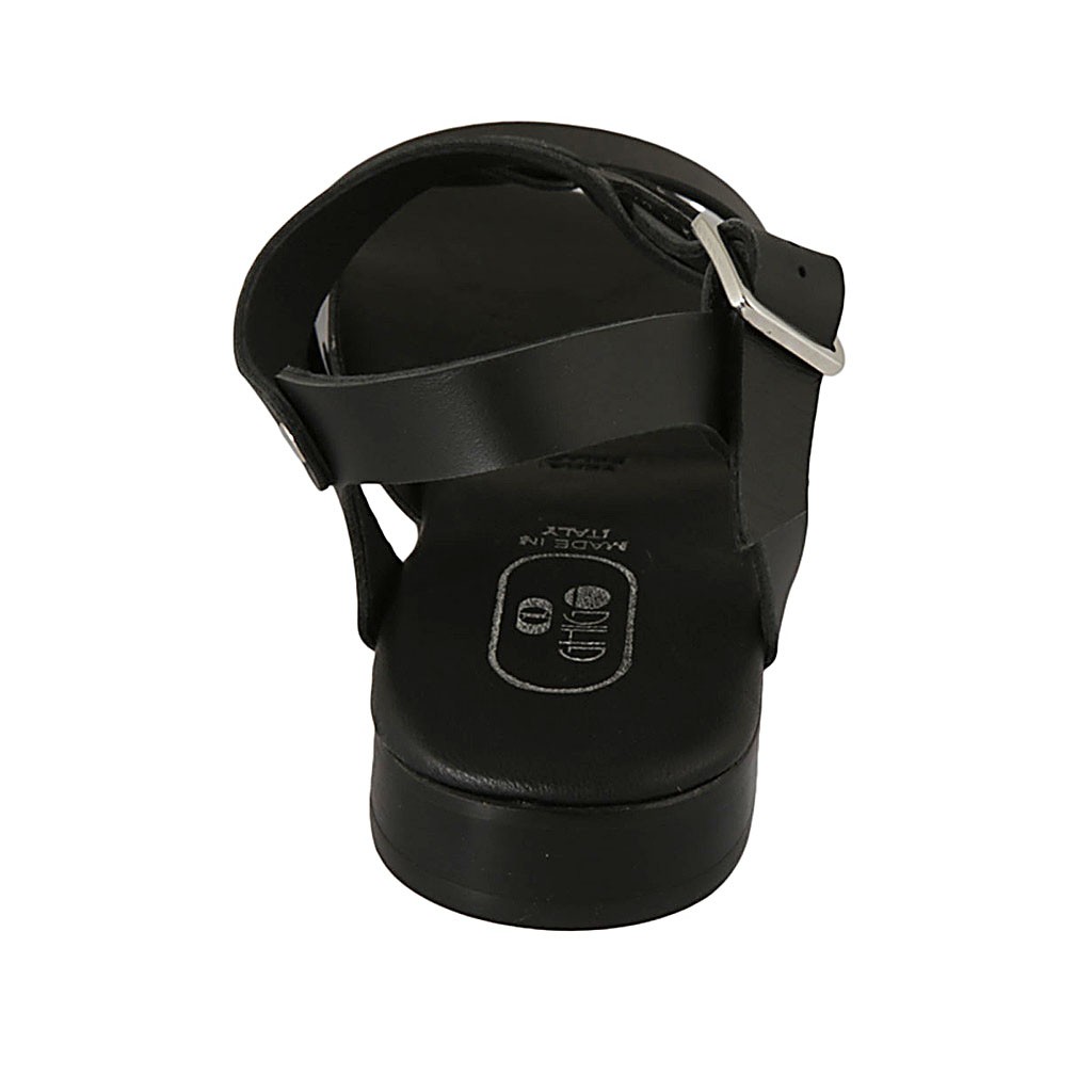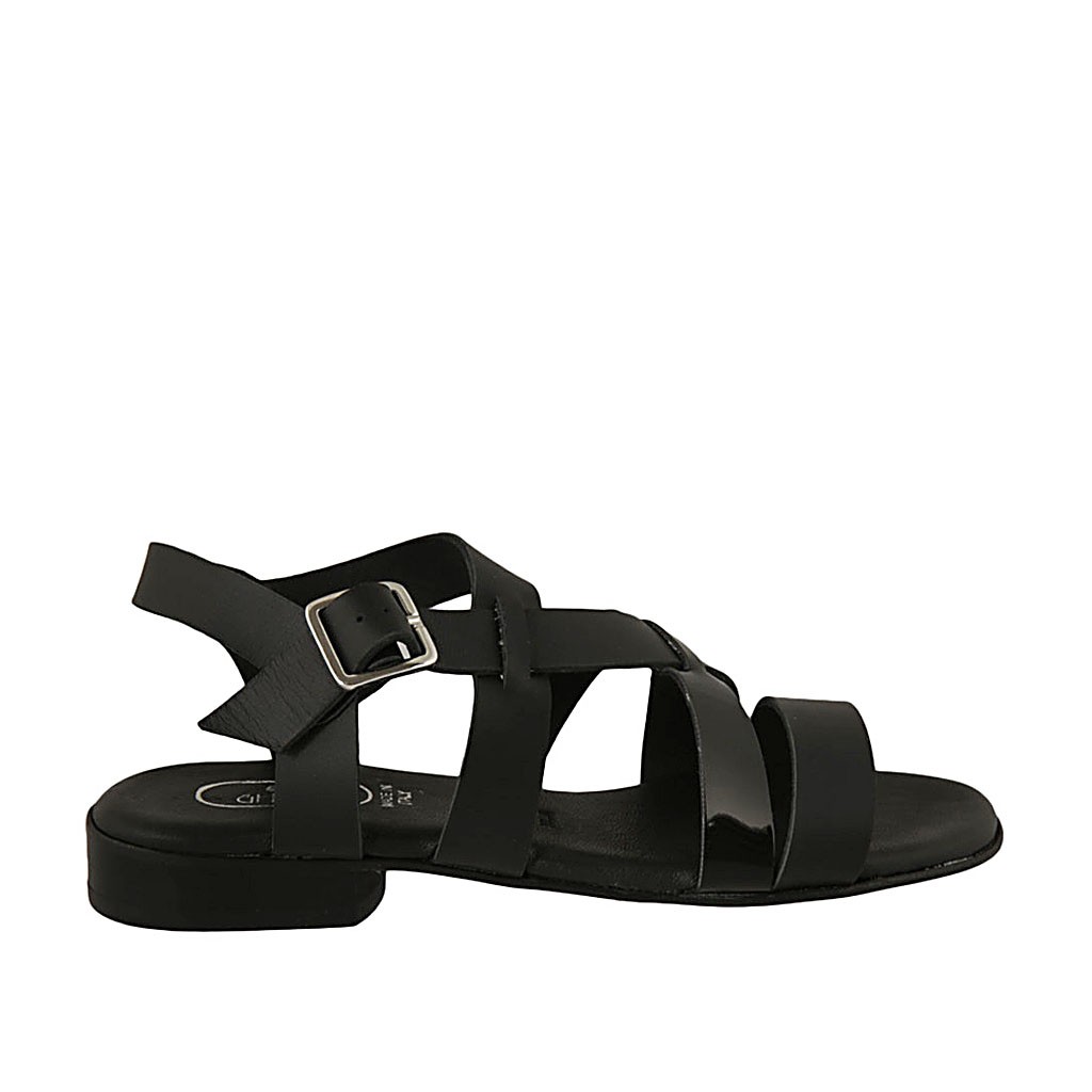 Sandale pour femmes en cuir et cuir verni noir talon 2