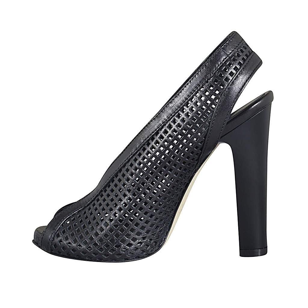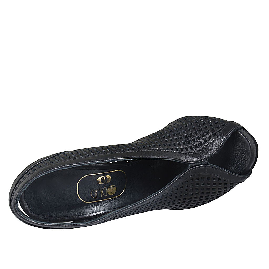 Sandale pour femmes avec plateforme en cuir perforé noir talon 11