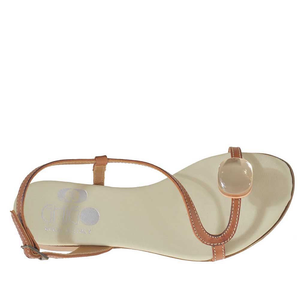 Sandale entre-doigt pour femmes avec accessoire en cuir brun clair talon 2