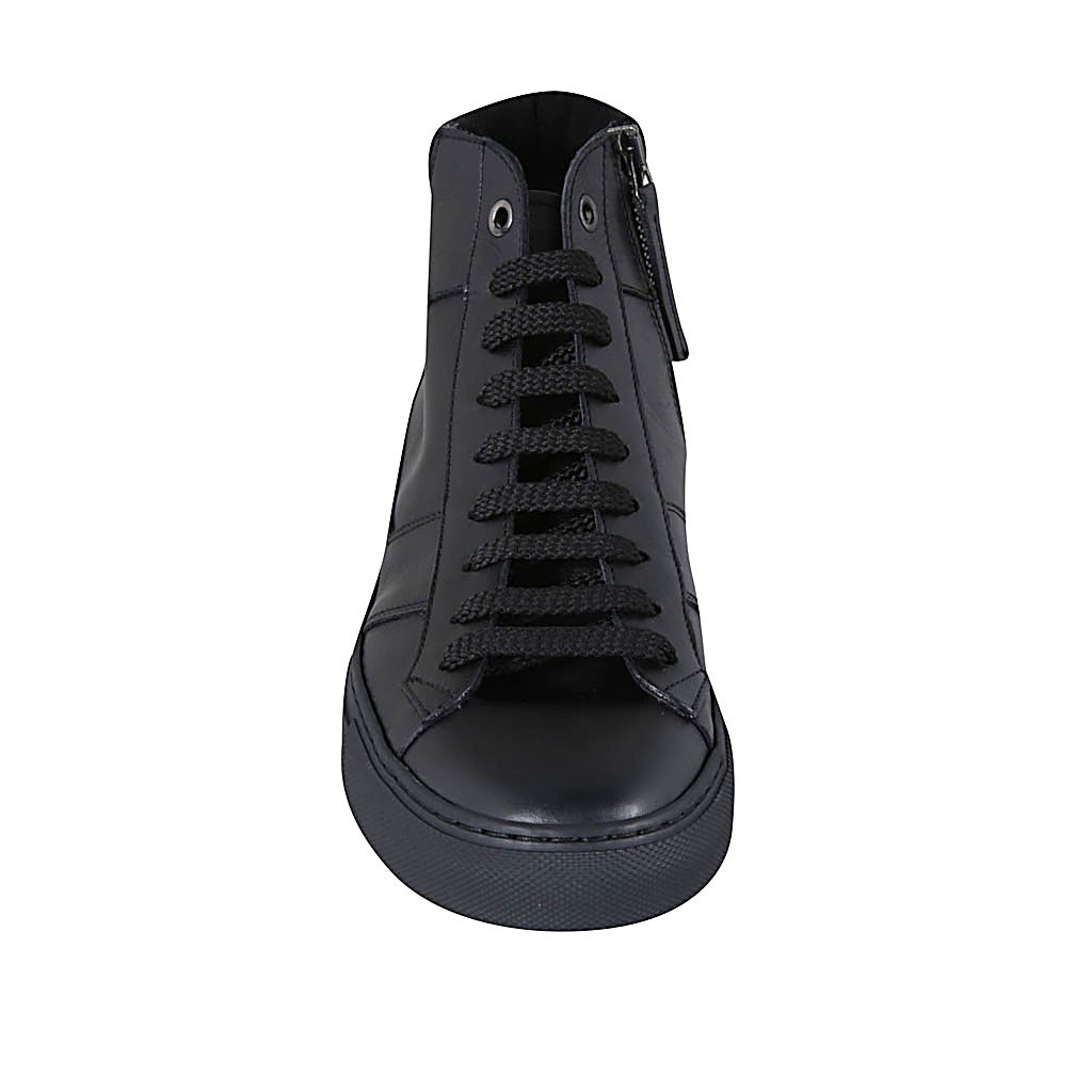 Chaussure à lacets pour hommes avec fermeture éclair et semelle amovible en cuir et daim noir