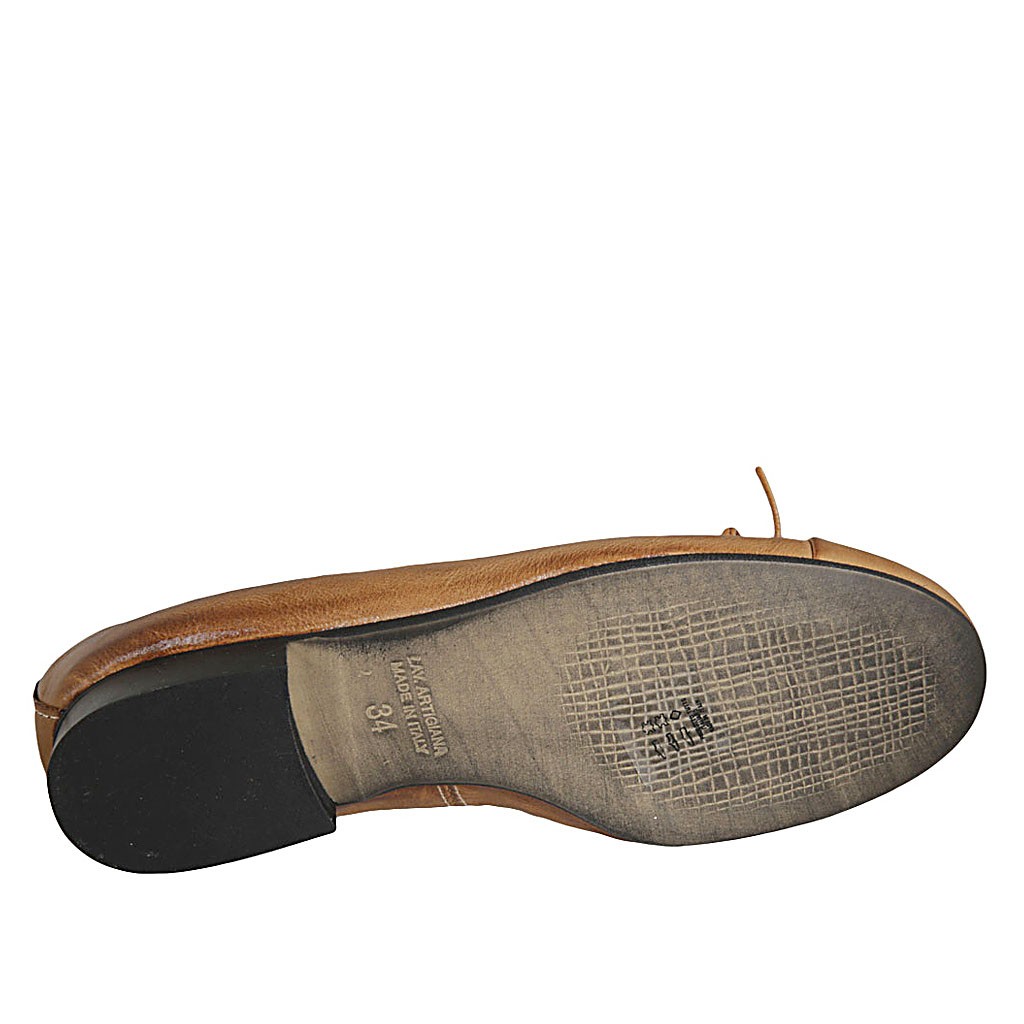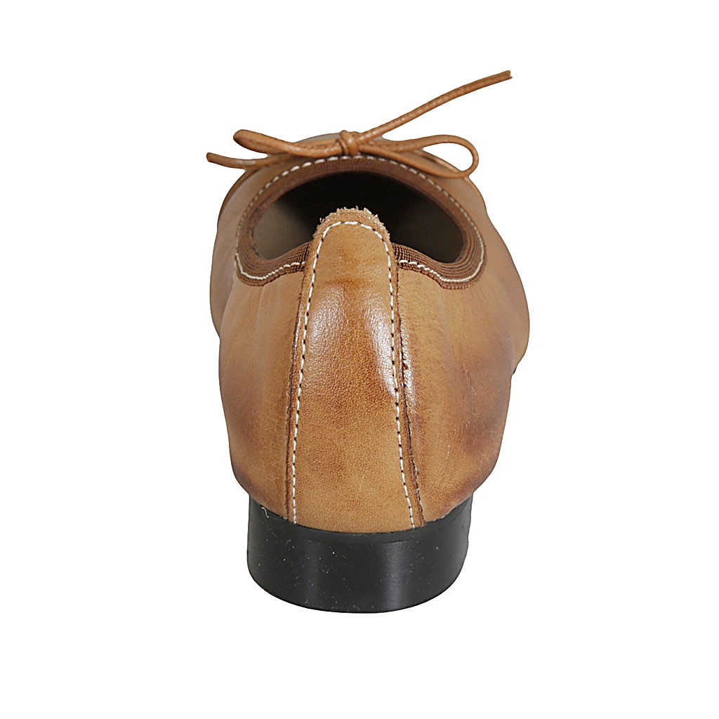 Ballerina da donna con fiocco e puntale in pelle color cuoio tacco 2