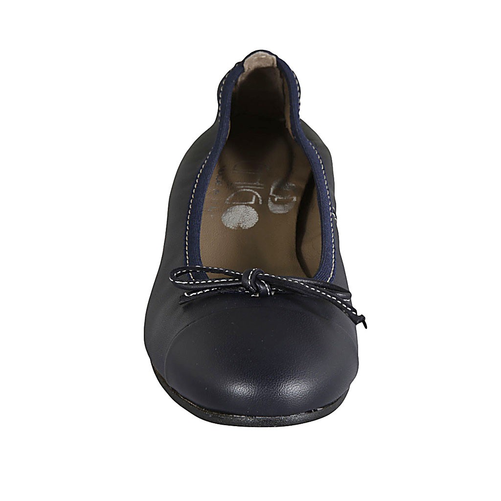 Ballerina da donna con fiocco e puntale in pelle blu tacco 2