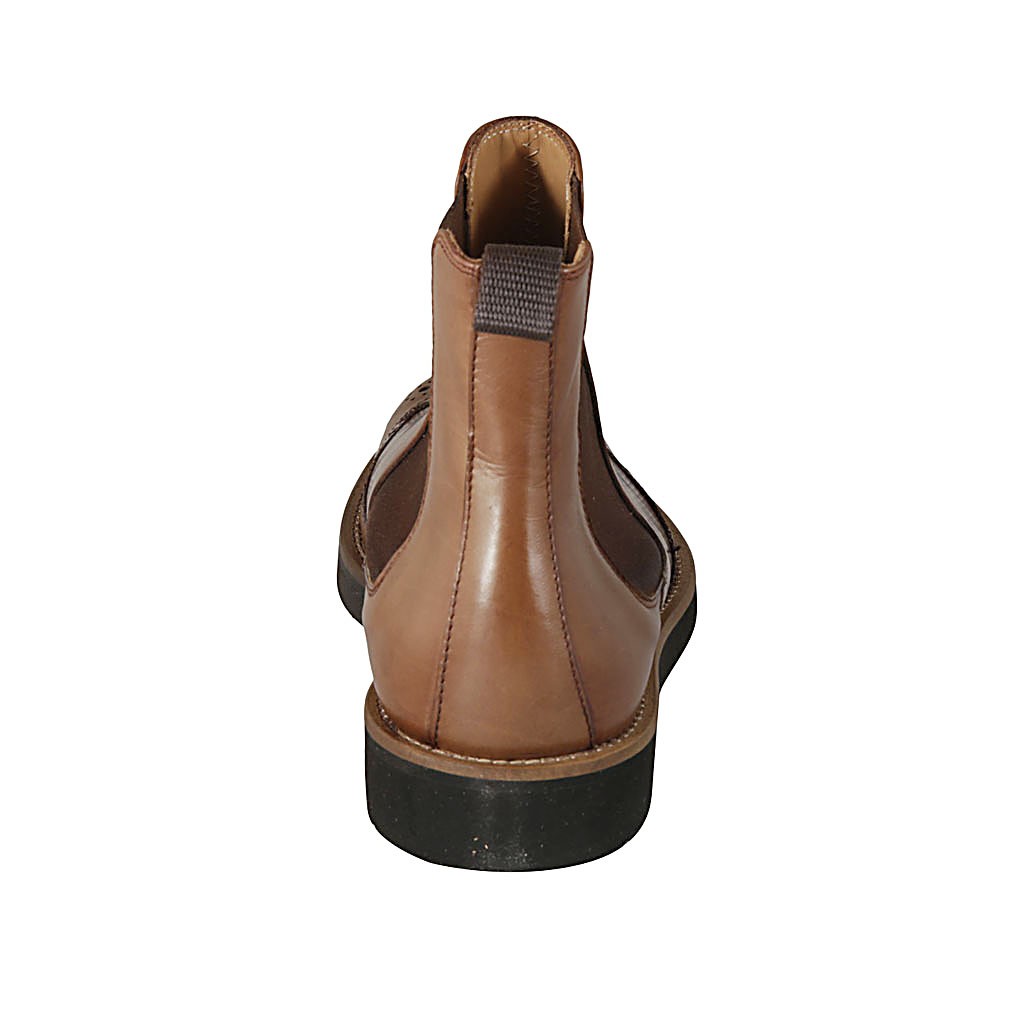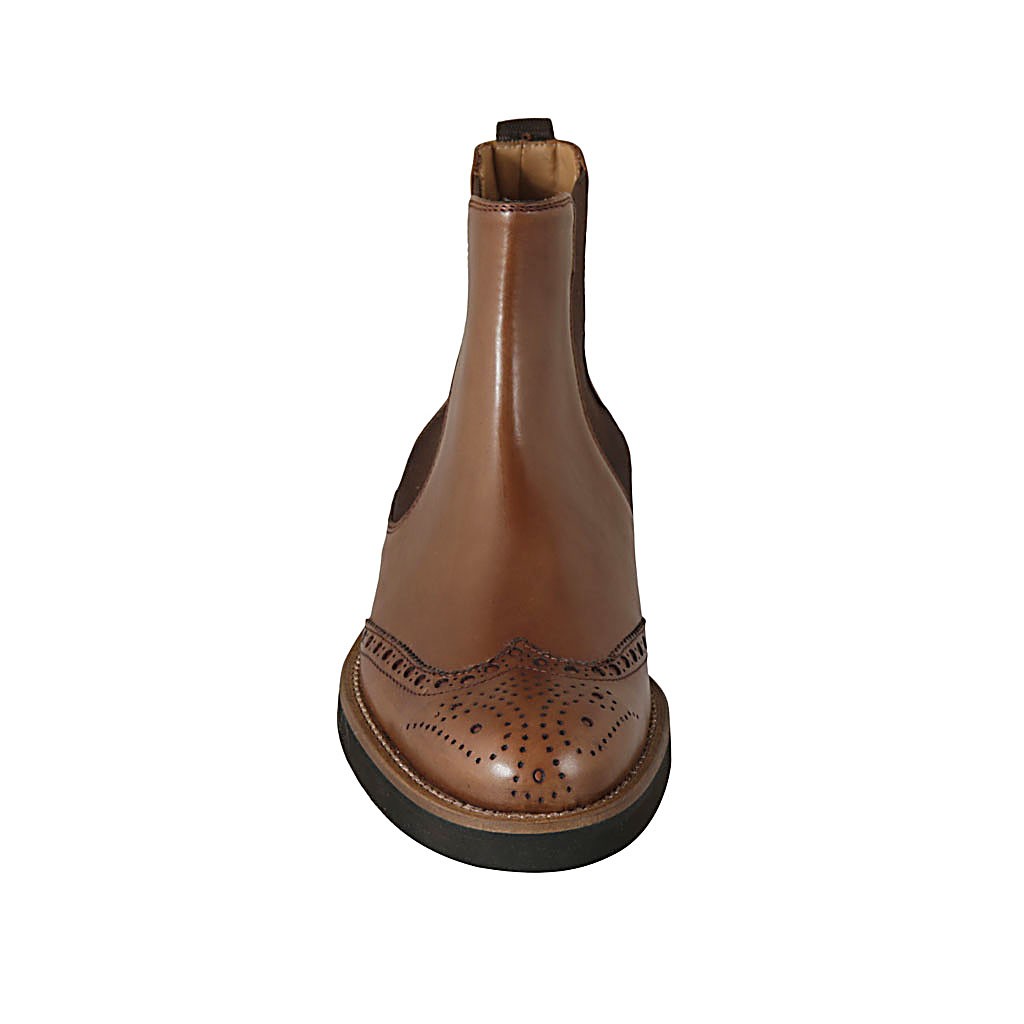 Stivaletto da uomo con elastici e lavorazione Brogue in pelle color cuoio