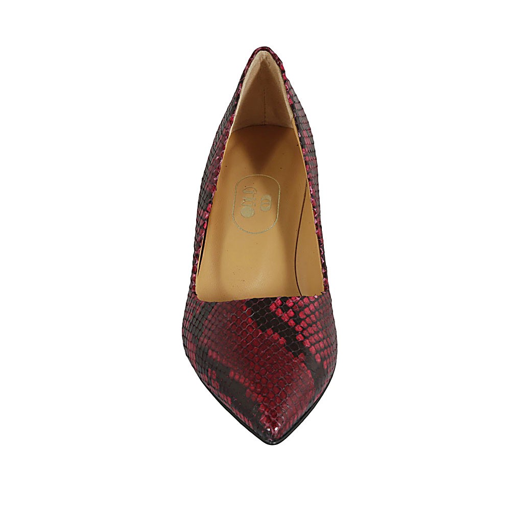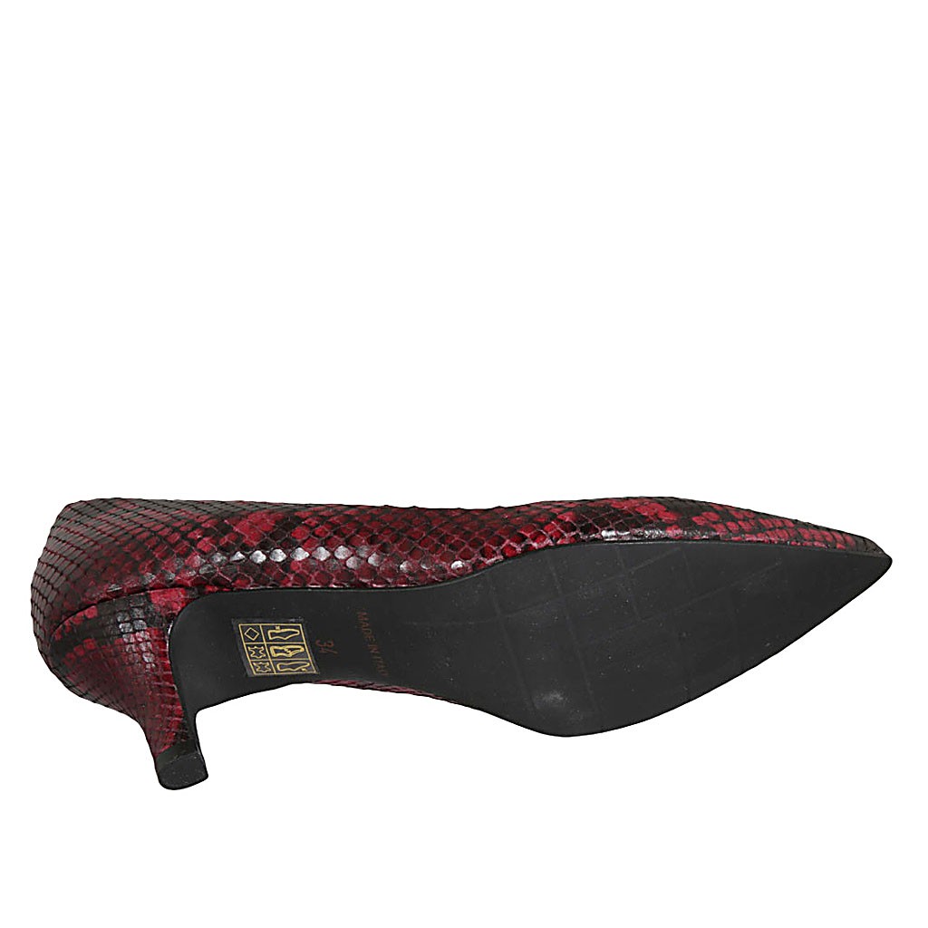 Decolté da donna in pelle stampata rossa e nera tacco 5