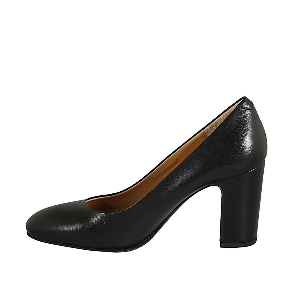 Decolté da donna a punta tonda in pelle nera tacco 8