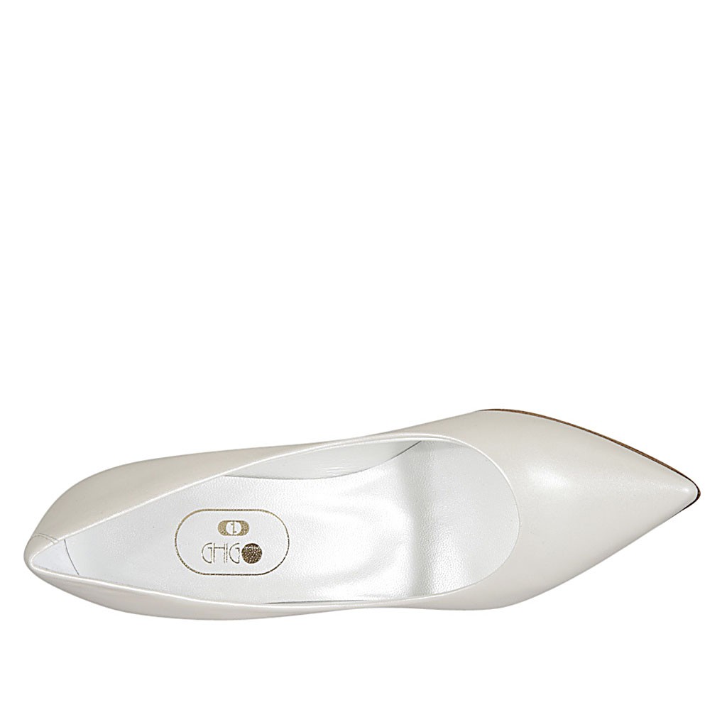 Decolté da donna in pelle avorio perlato tacco 7