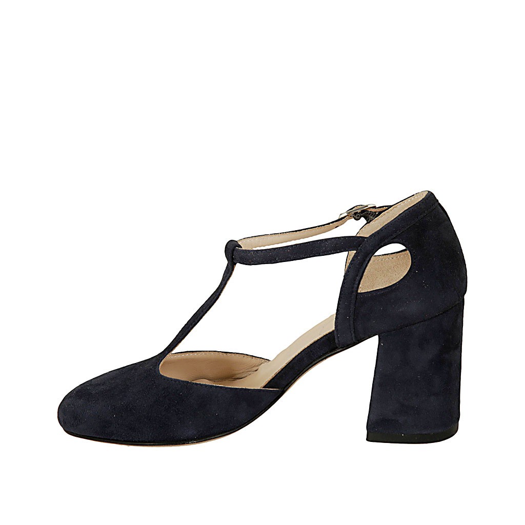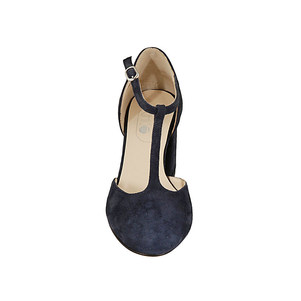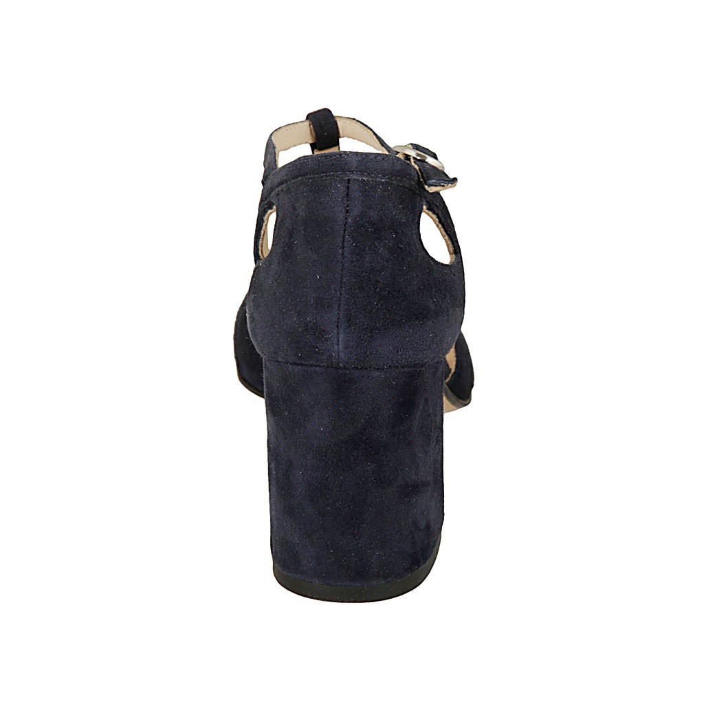Scarpa aperta da donna con cinturino in camoscio blu tacco 7