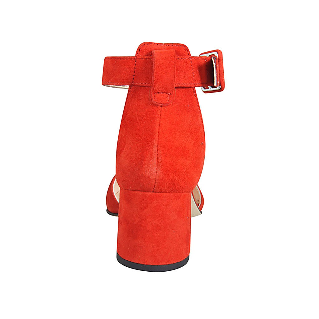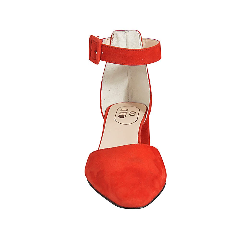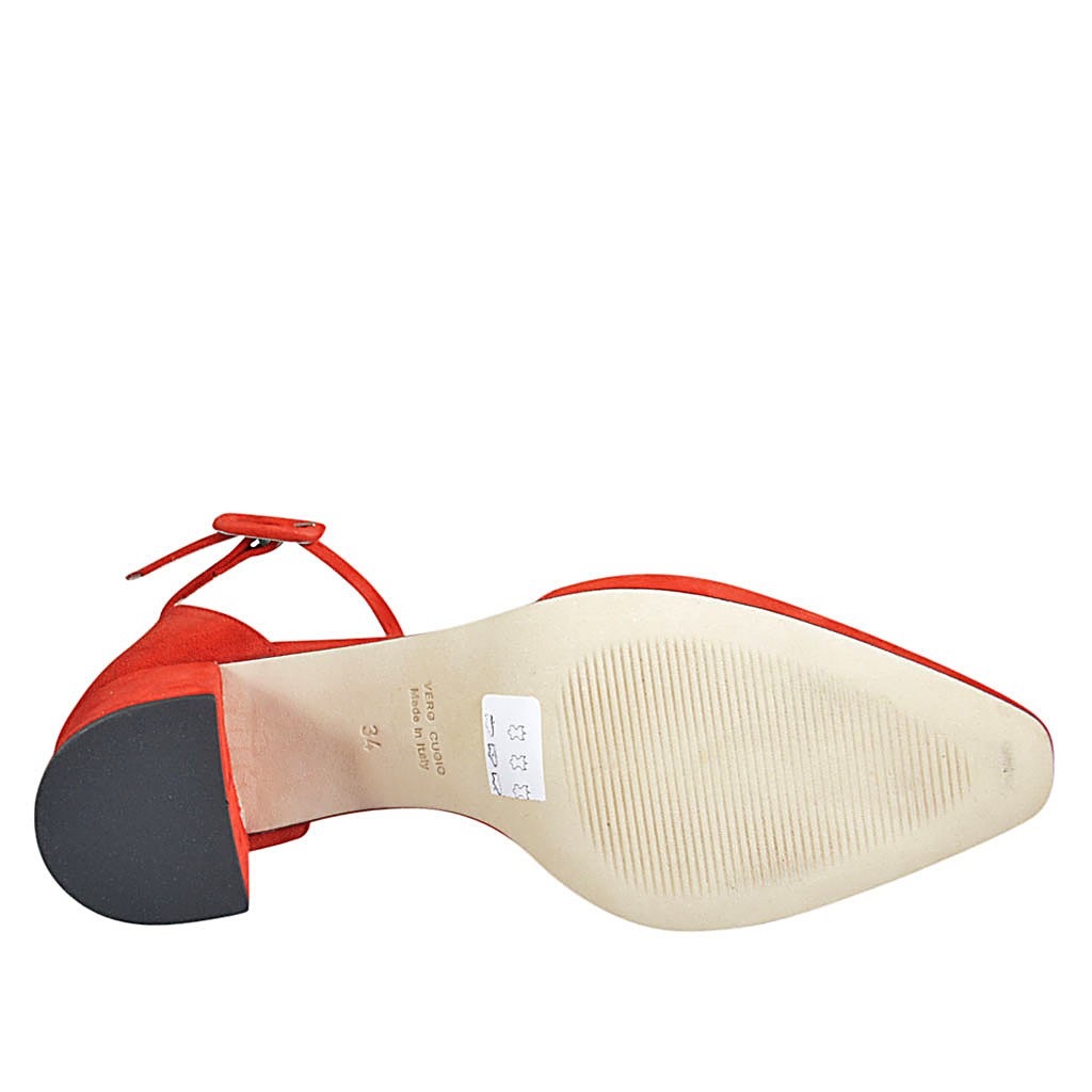 Scarpa aperta a punta da donna con cinturino in camoscio rosso tacco 5