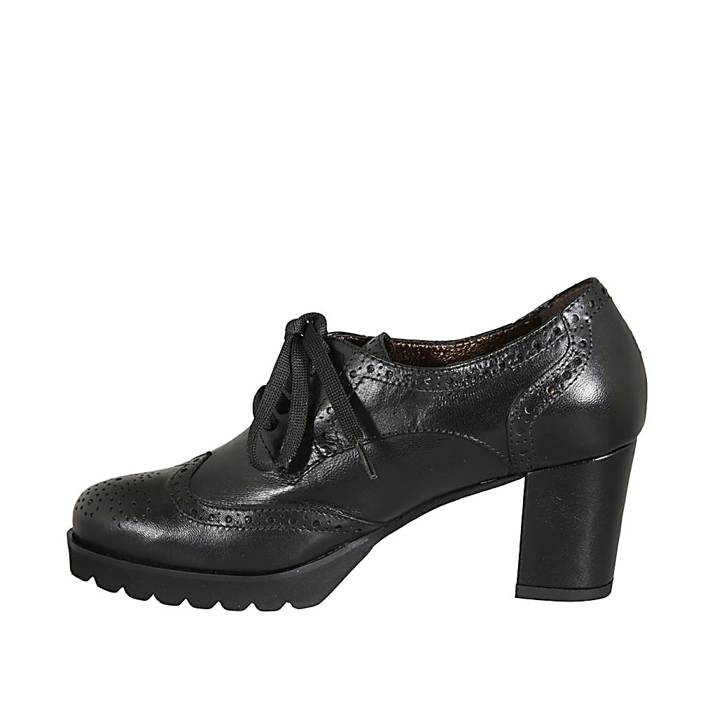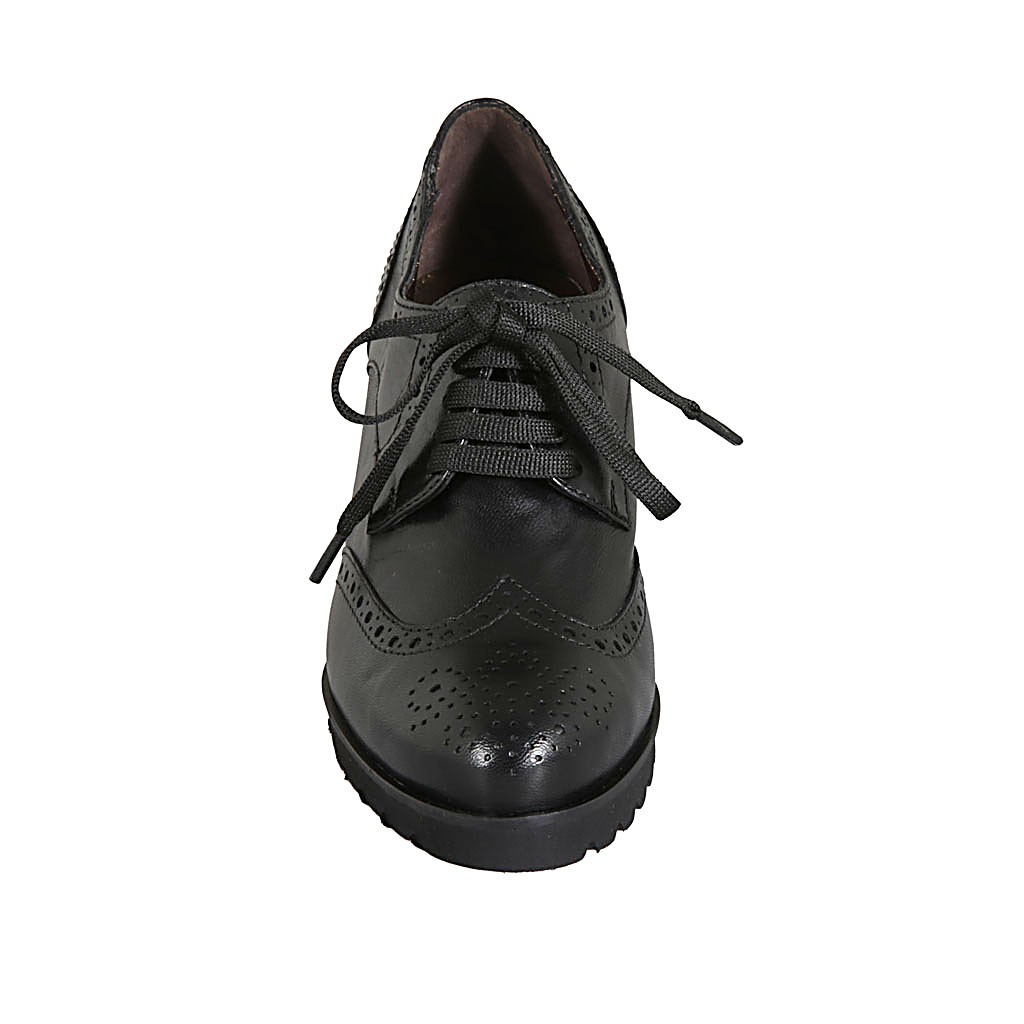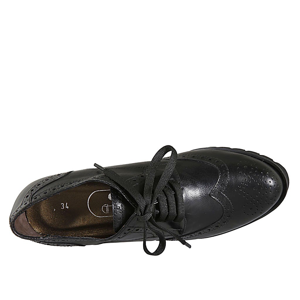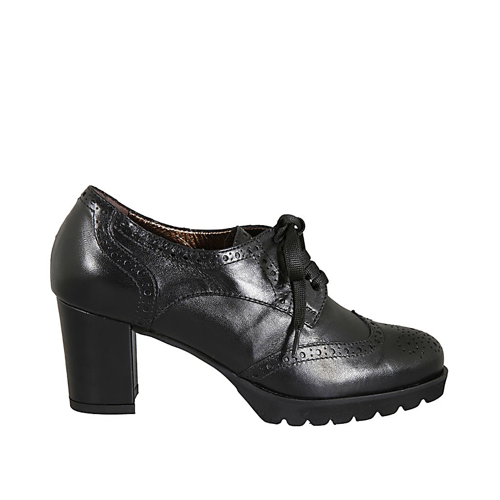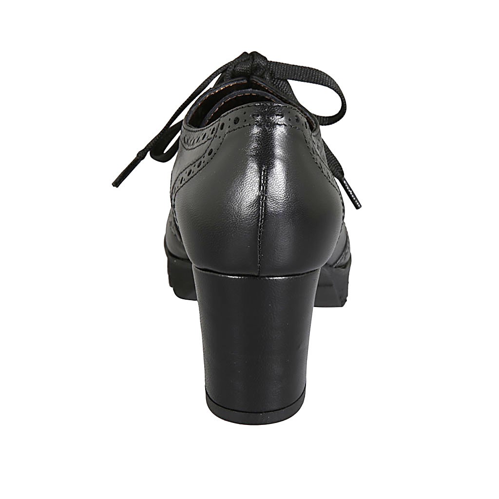 Scarpa derby stringata da donna in pelle nera con lavorazione Brogue tacco 6