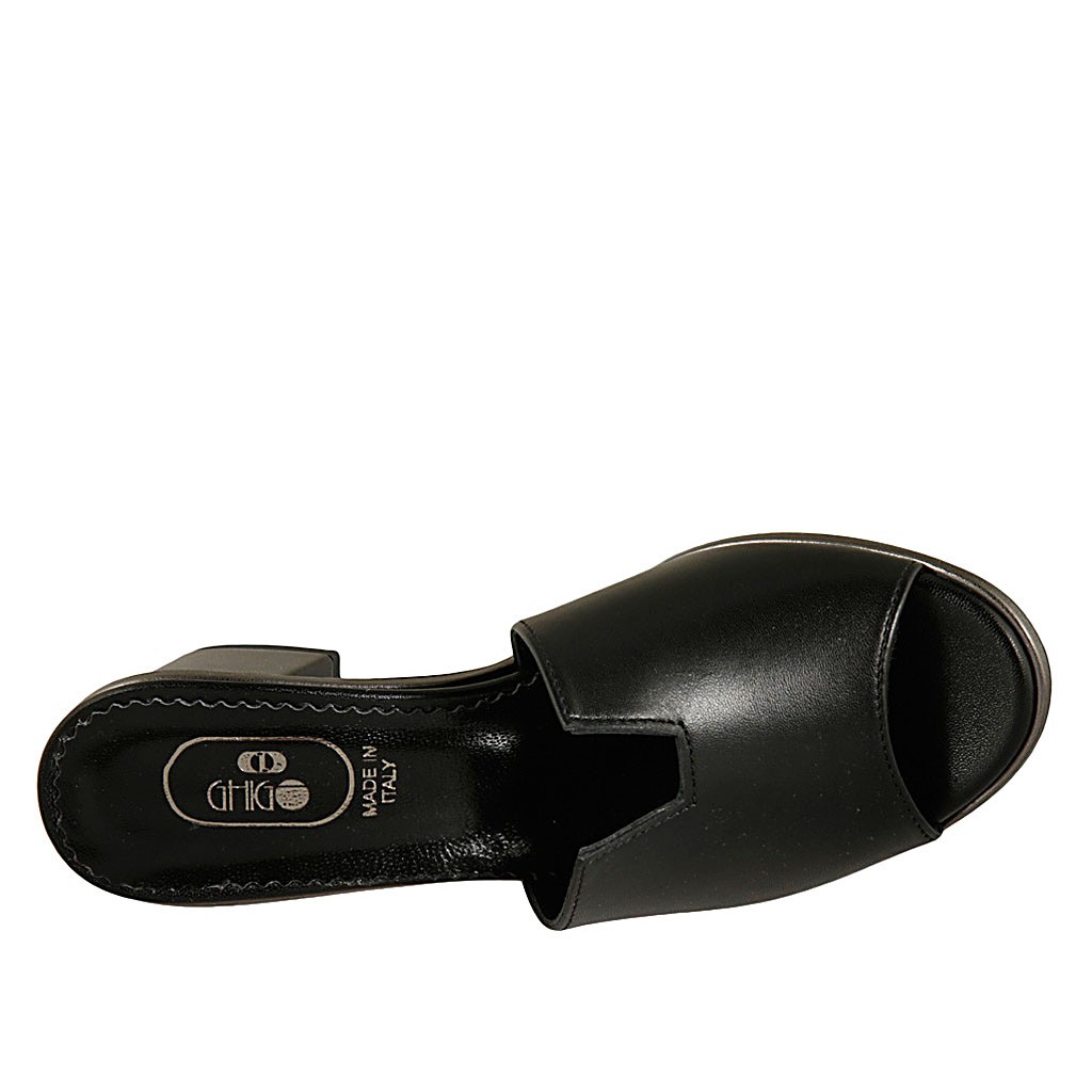 Sabot aperto da donna in pelle nera tacco 5