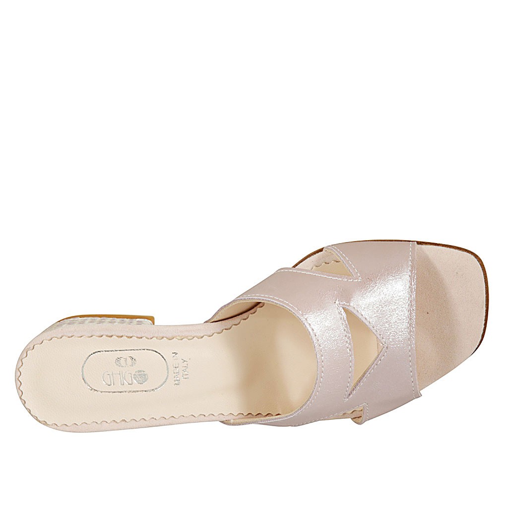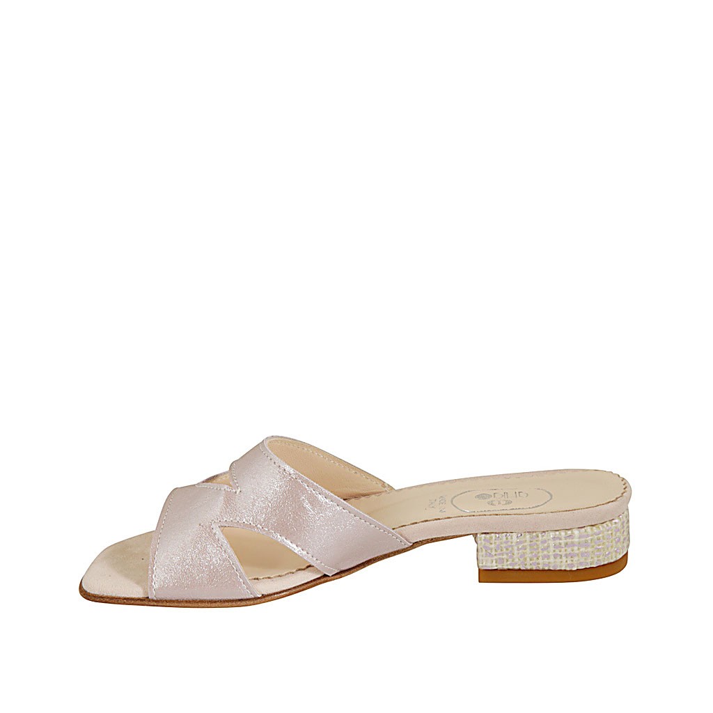 Sabot aperto da donna in pelle laminata rosa e tessuto tacco 2