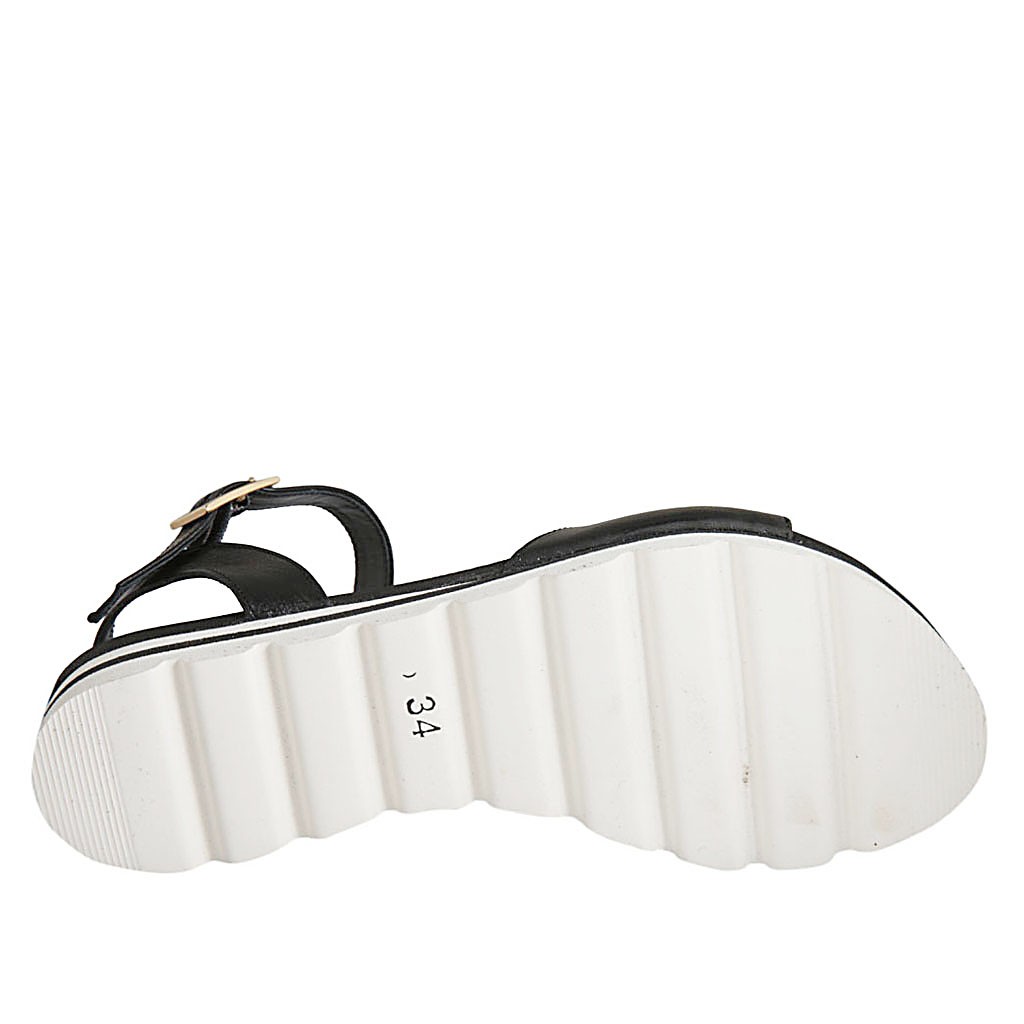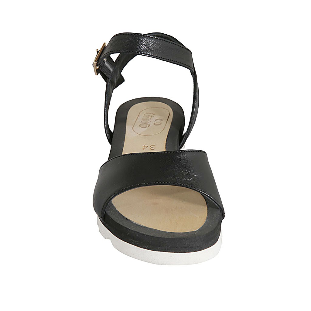 Sandalo da donna con cinturino in pelle nera zeppa 2