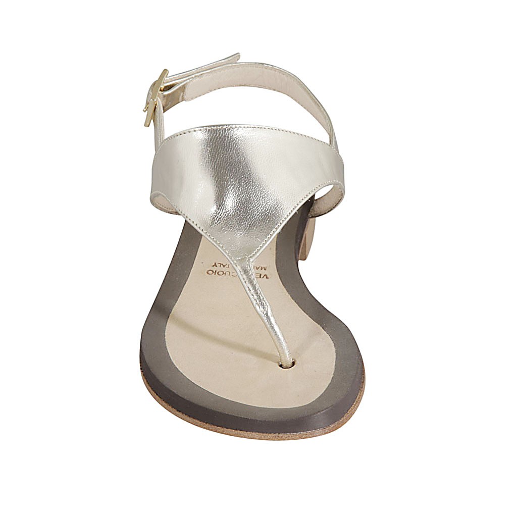 Sandalo infradito da donna in pelle laminata platino tacco 2