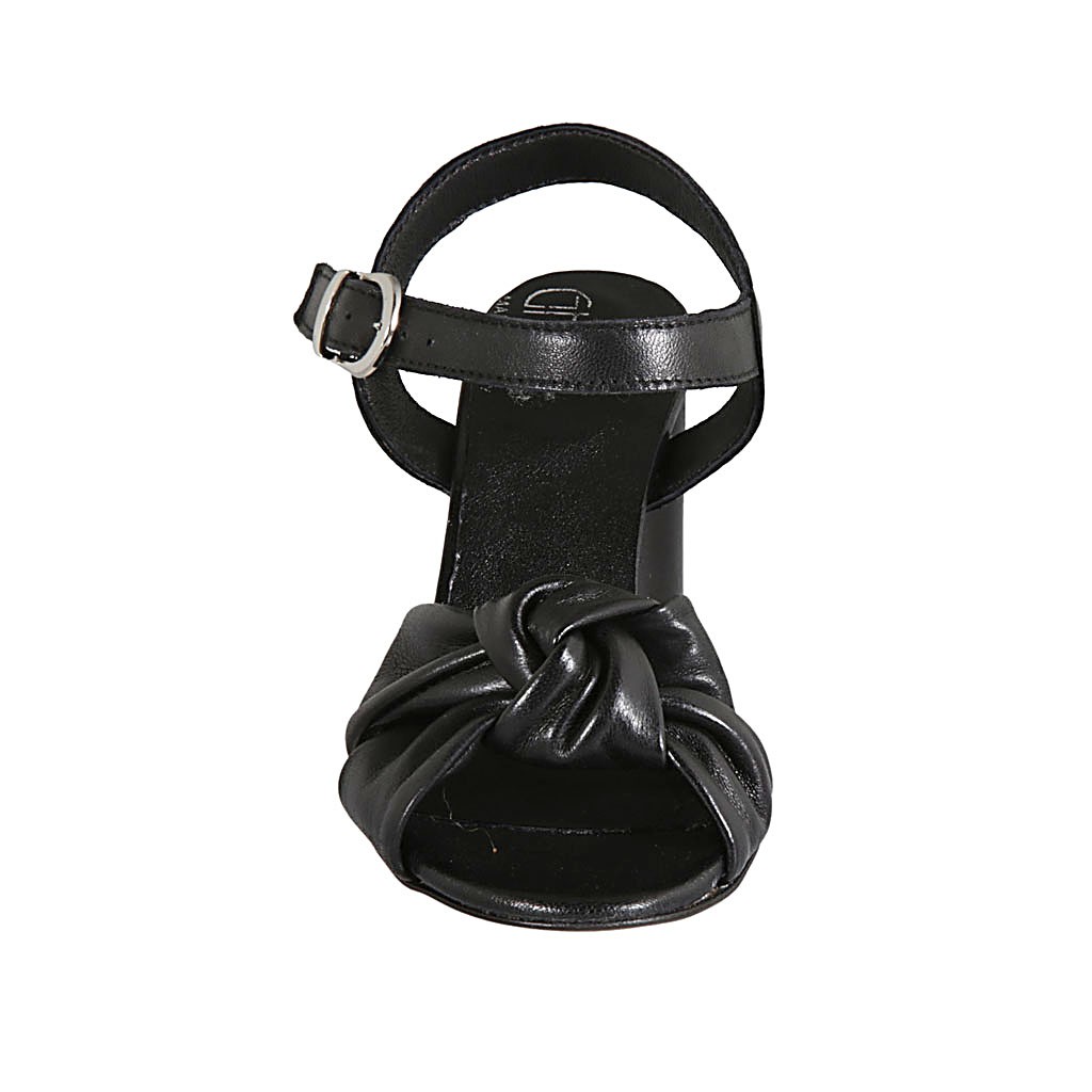 Sandalo da donna con cinturino e nodo in pelle nera tacco 7