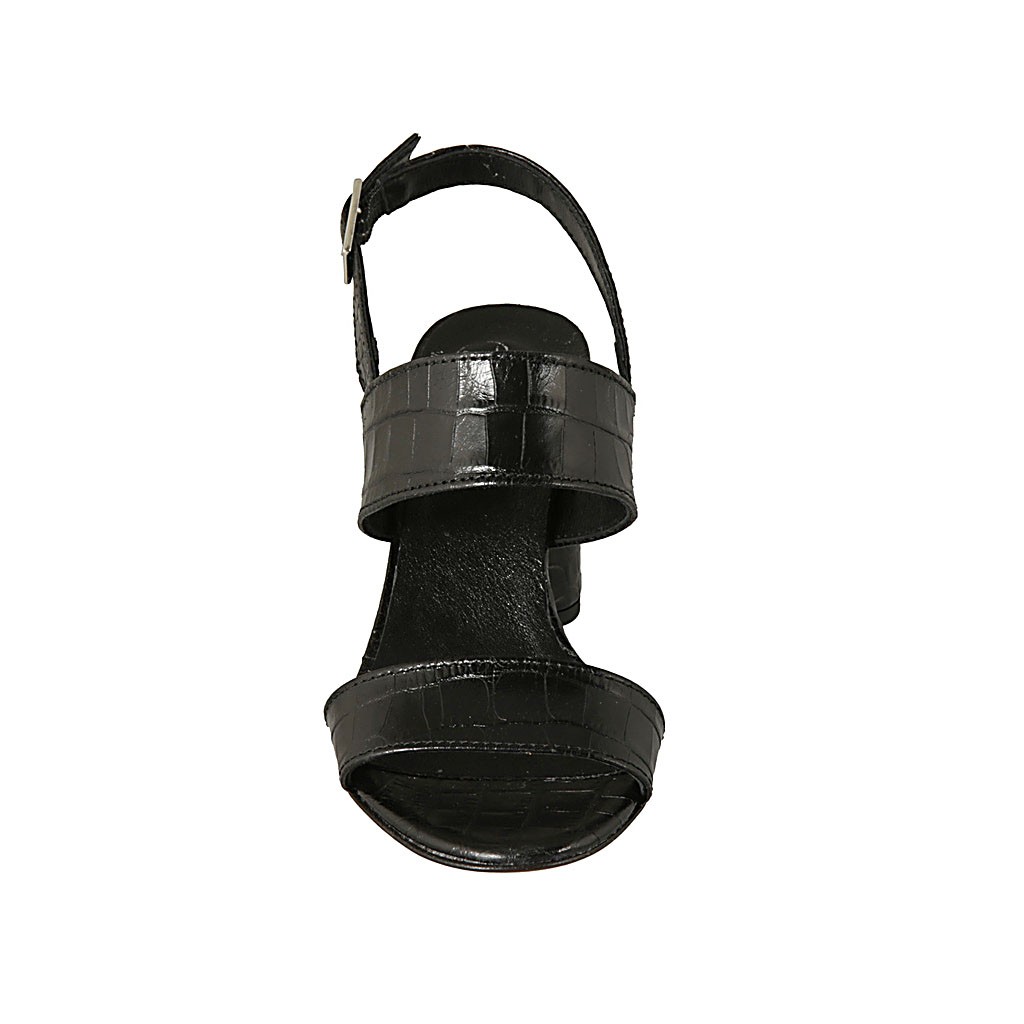 Sandalo da donna con cinturino in pelle stampata nera tacco 7