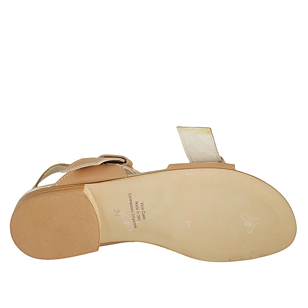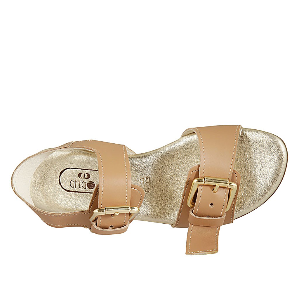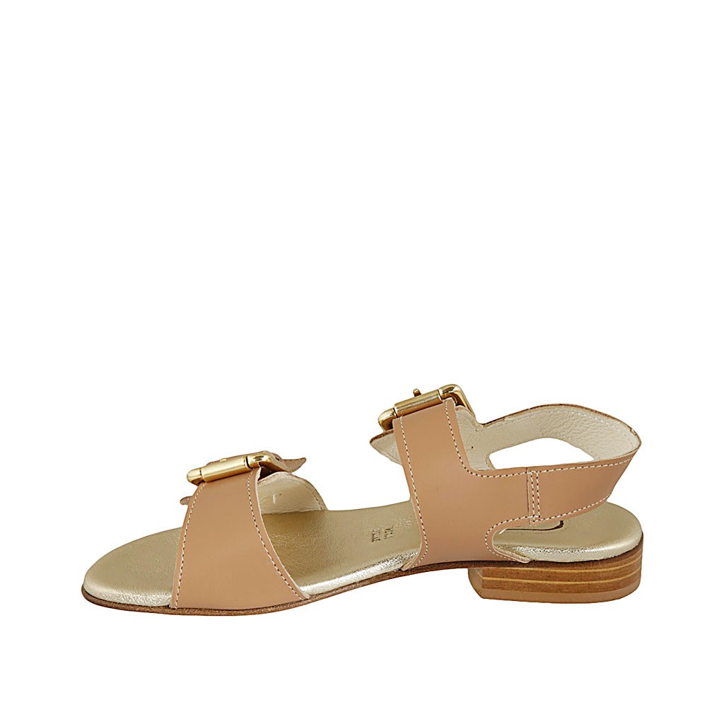 Sandalo da donna con fibbie in pelle beige tacco 2