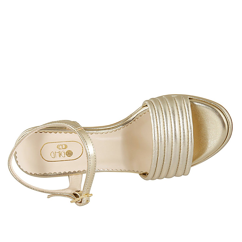 Sandalo da donna in pelle laminata platino con cinturino tacco 5