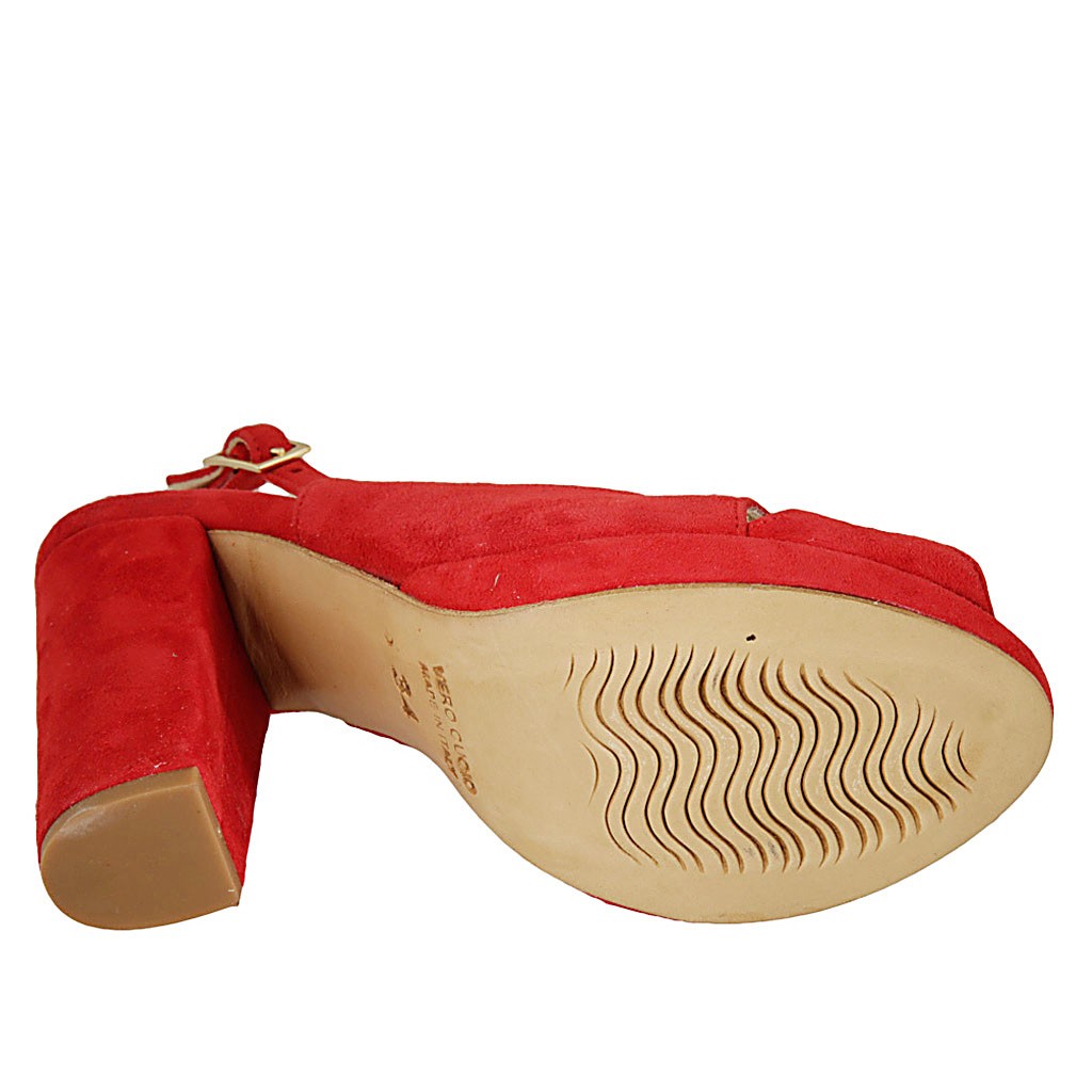 Sandalo da donna con cinturino e plateau in camoscio rosso tacco 10