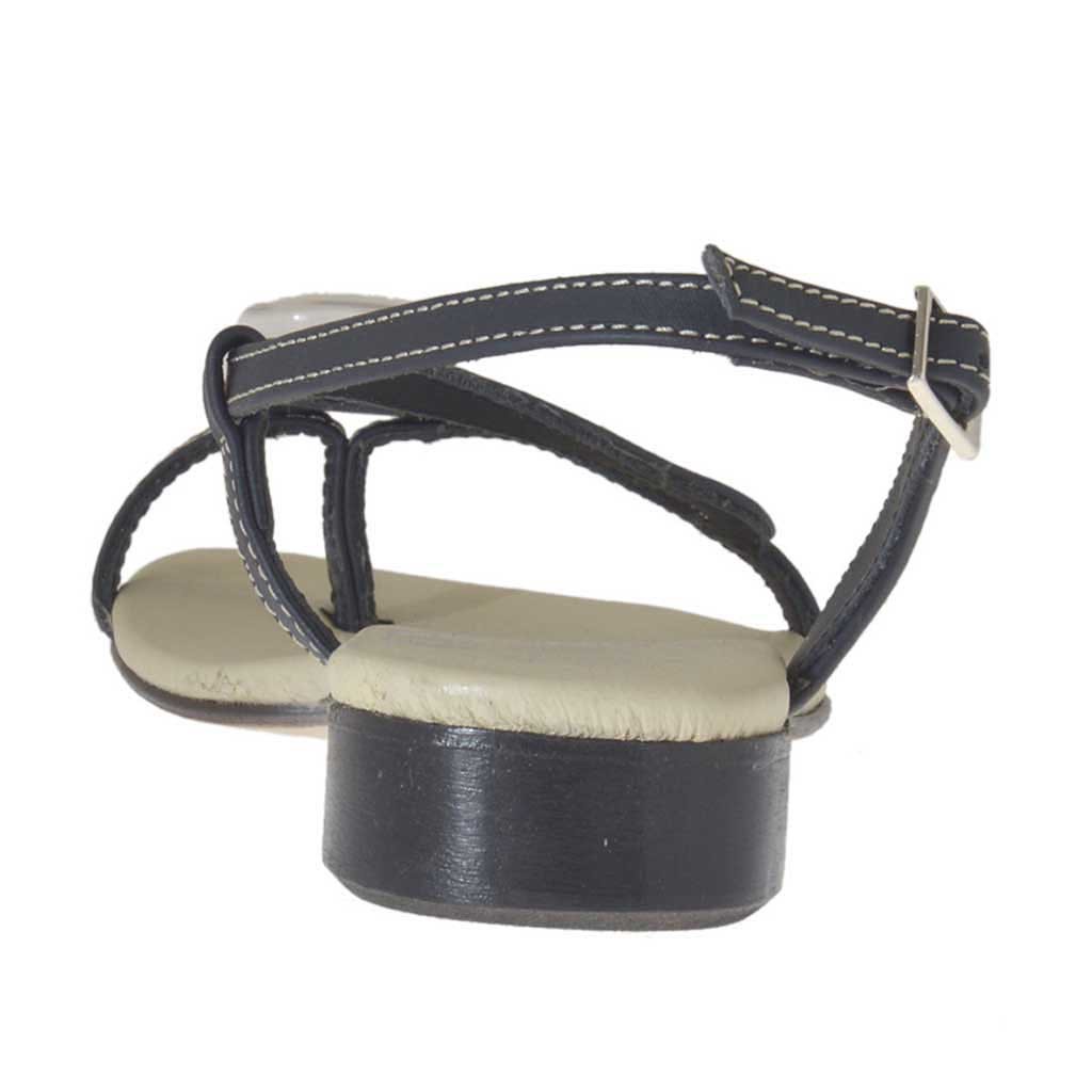 Sandalo infradito da donna con accessorio in pelle blu tacco 2