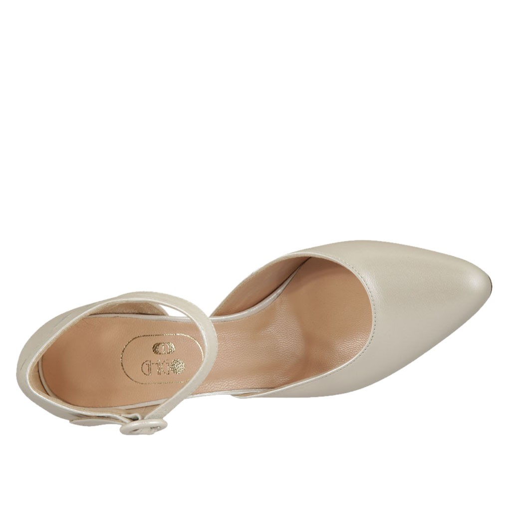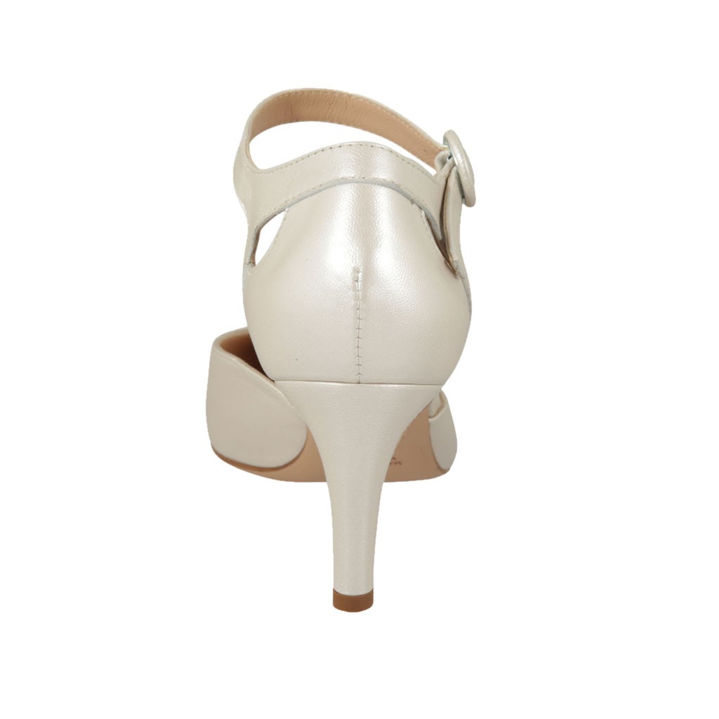 Scarpa aperta da donna con cinturino in pelle avorio perlato tacco 7