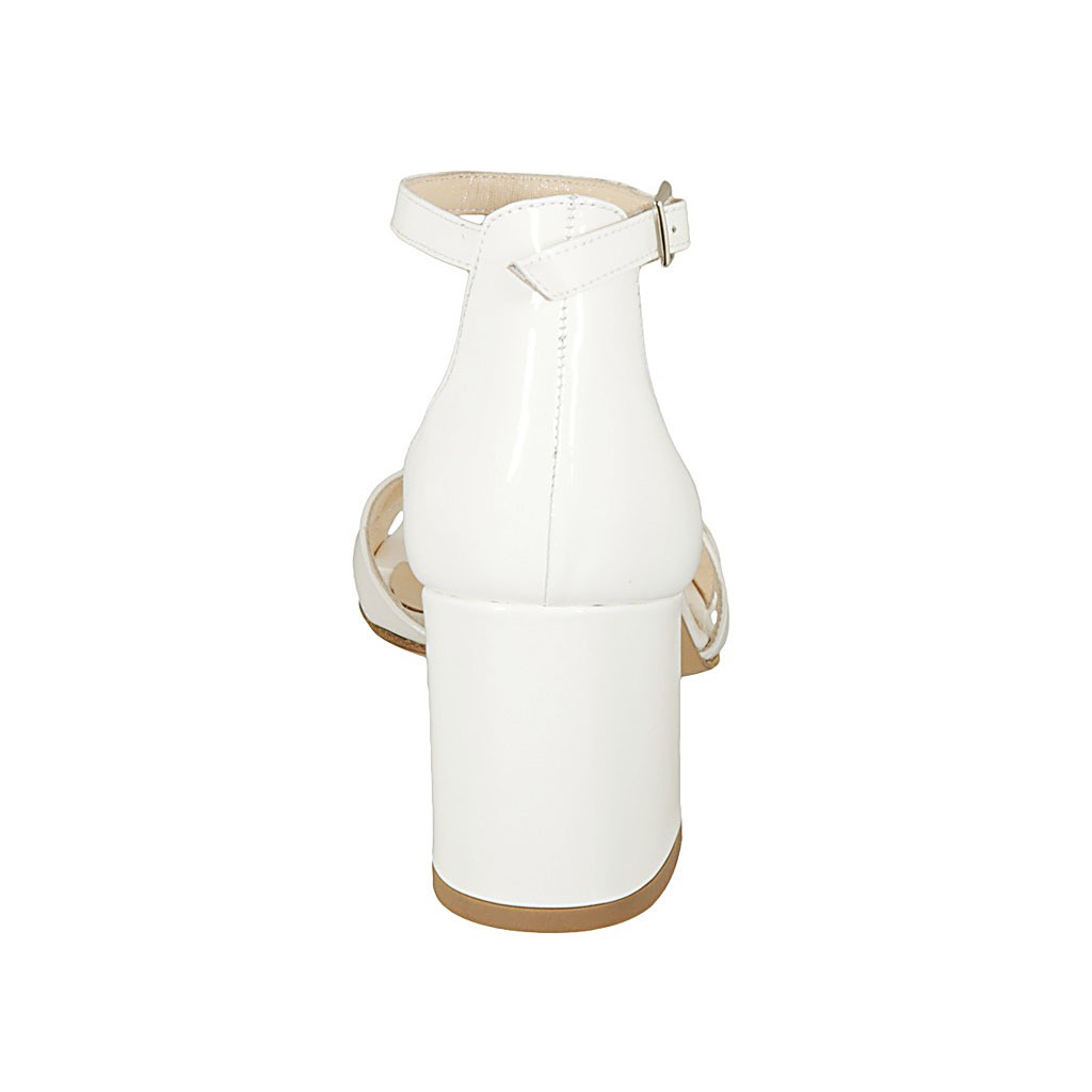 Scarpa aperta da donna in vernice bianca con cinturino tacco 7