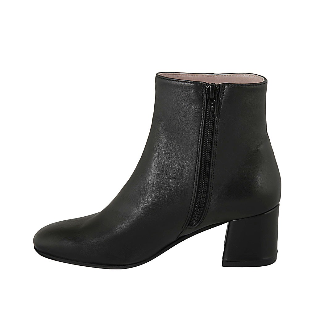 Stivaletto da donna a punta tonda con cerniera in pelle nera tacco 5