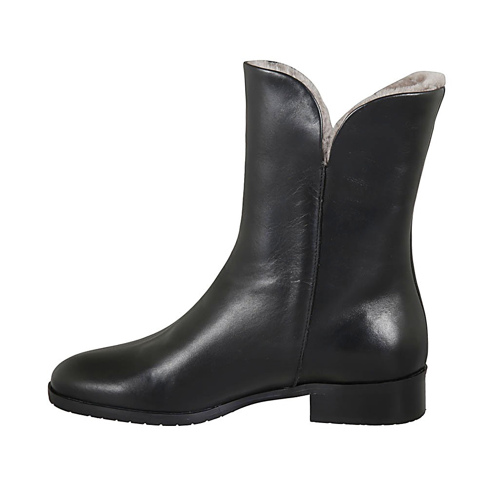 Stivaletto imbottito da donna in pelle nera con cerniera tacco 3