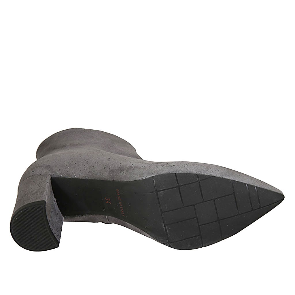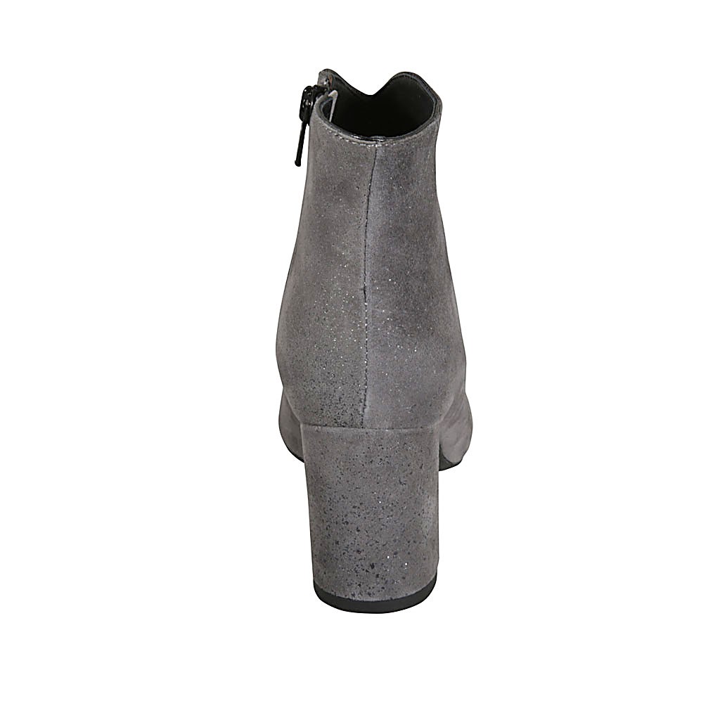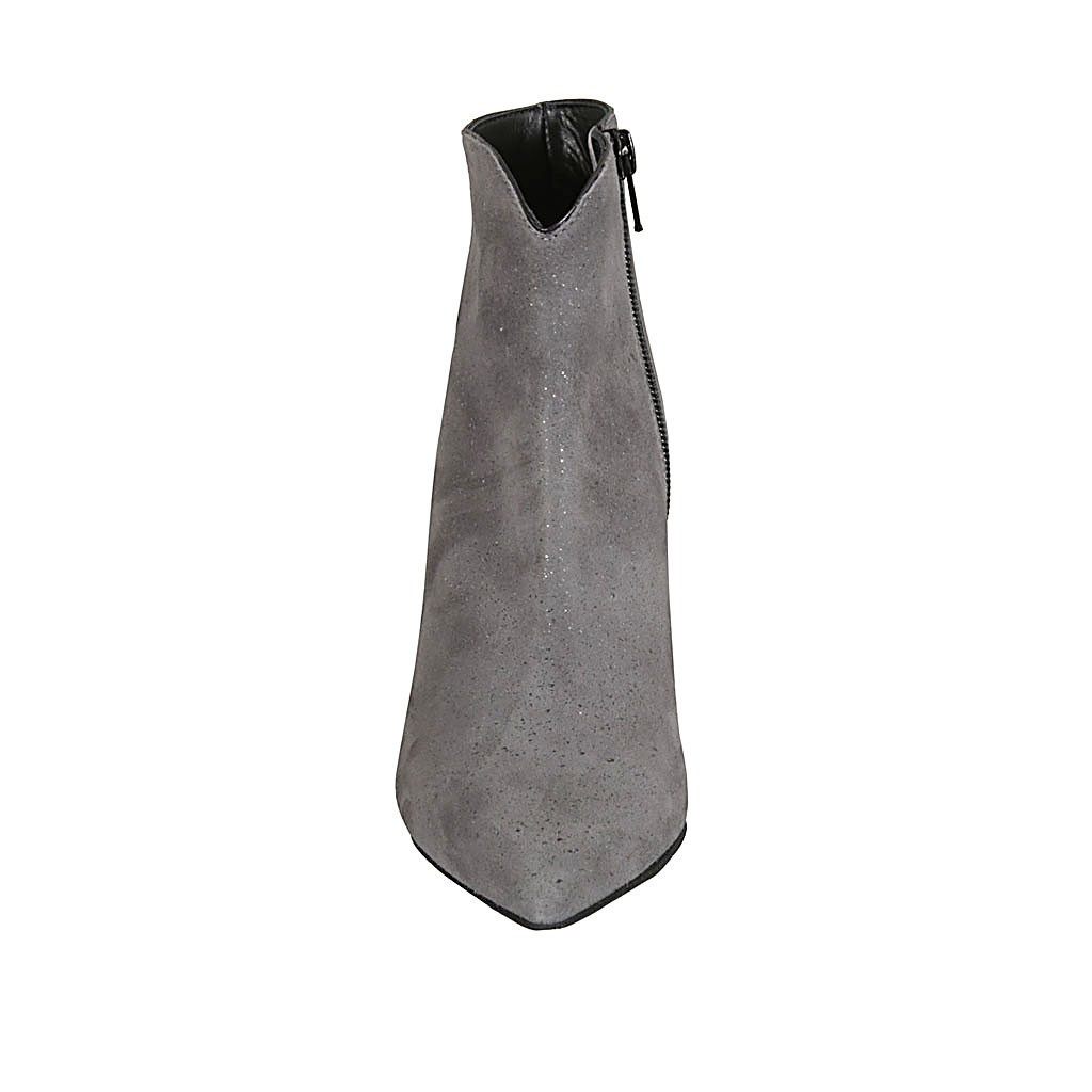 Stivaletto a punta da donna con cerniera in camoscio grigio stampato glitterato tacco 7