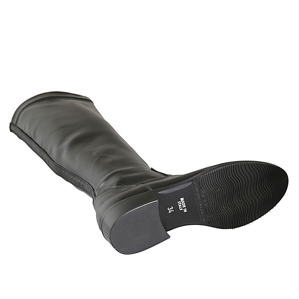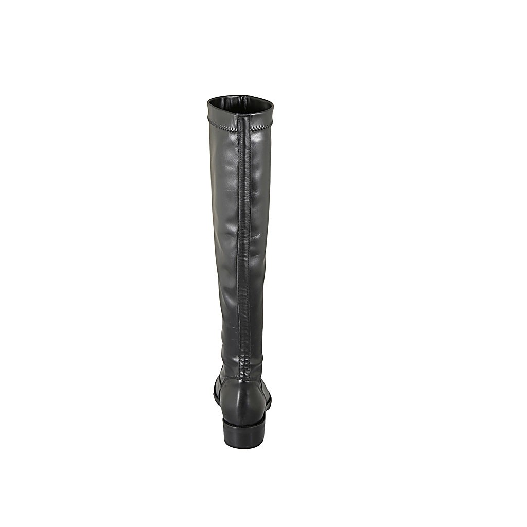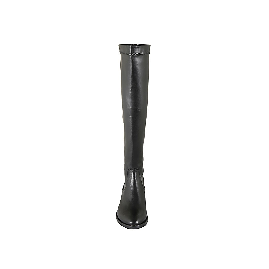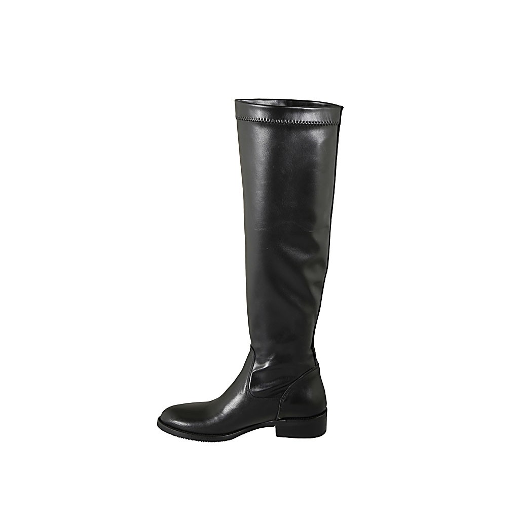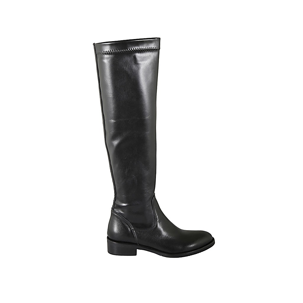 Stivale al ginocchio da donna in pelle ed elasticizzato nero tacco 3