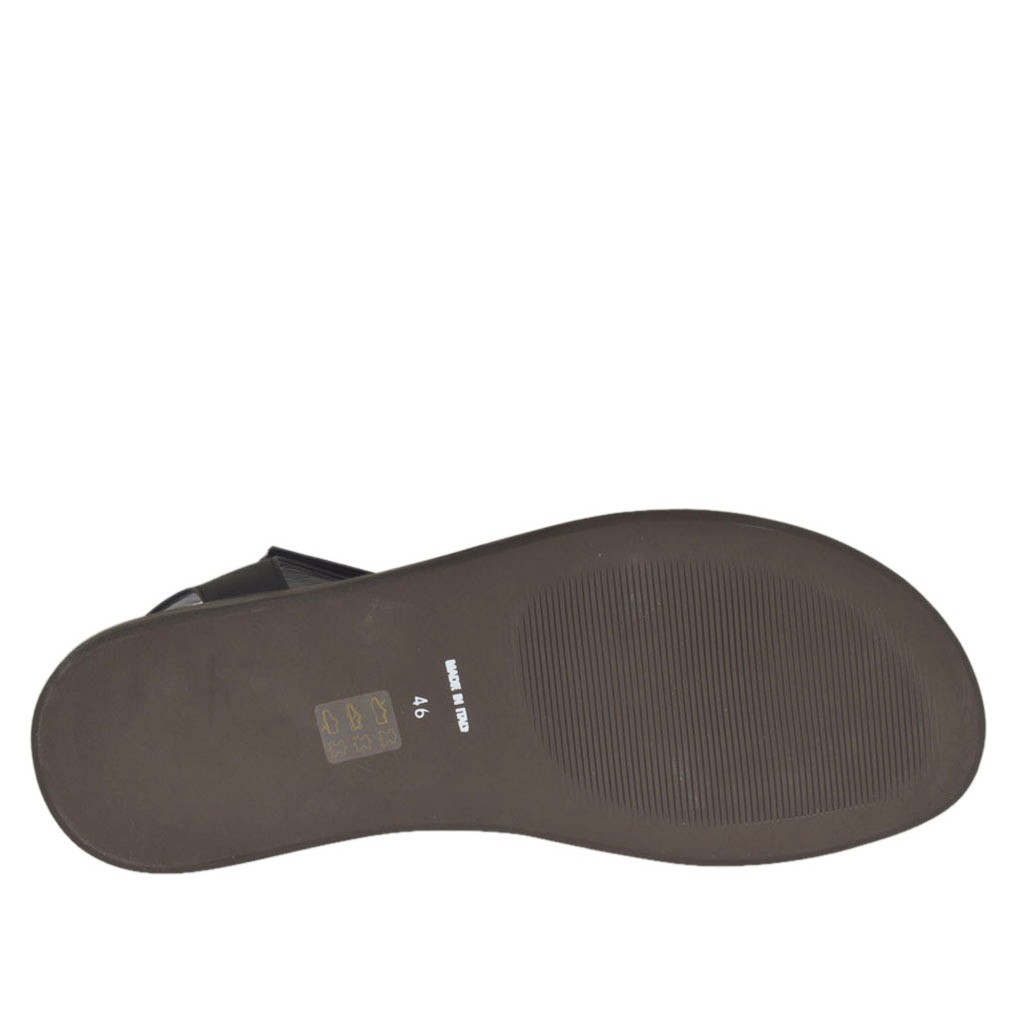 Sandalo da uomo con velcro, in pelle colore nero, fondo gomma, fodera pelle. Disponibile nelle misure grandi.