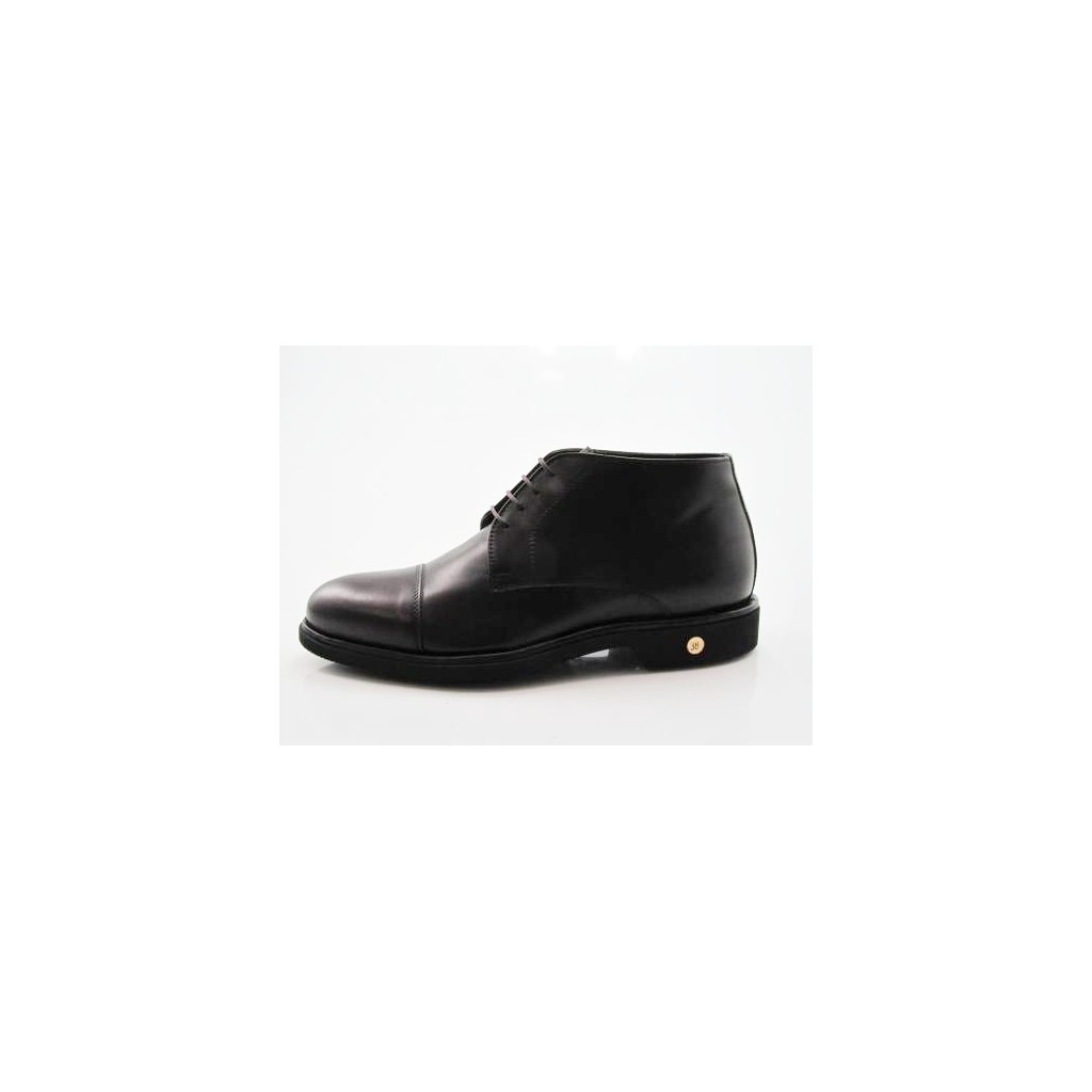 Scarpa alta stringata puntale in pelle di colore testa di moro, fondo gomma, fodera pelle.